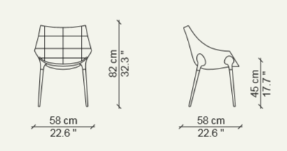 Passion is known for its iconic comfortable design, with a 4-leg frame in painted or chrome-plated steel. The Caprice chair, also by Philippe Starck, rounds out the collection.