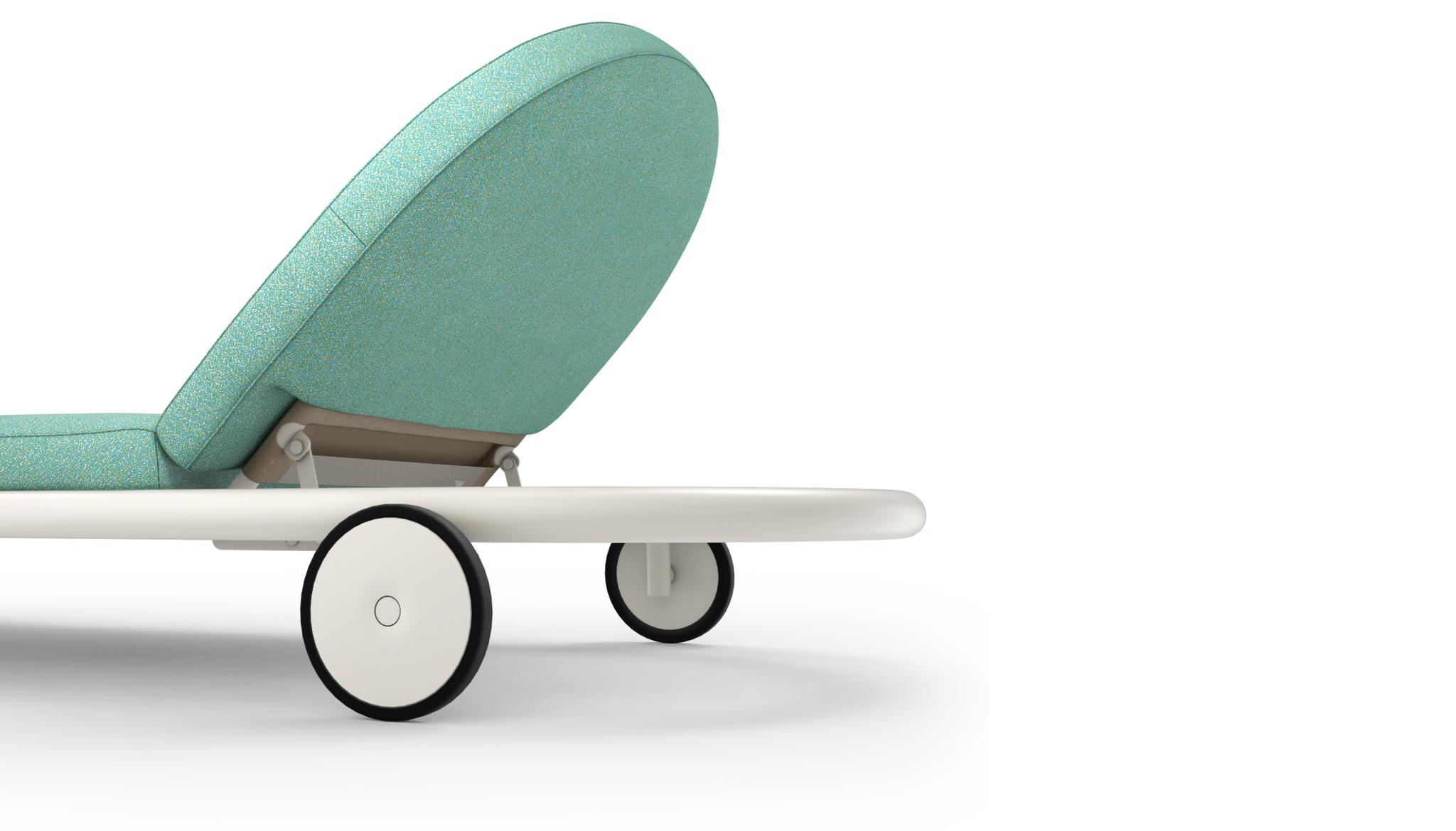 Patricia Urquiola designs a new sunbed that completes the Trampoline family of outdoor furnishings, a sophisticated, versatile product and an open invitation to comfort and wellbeing outdoors.