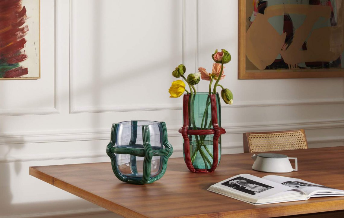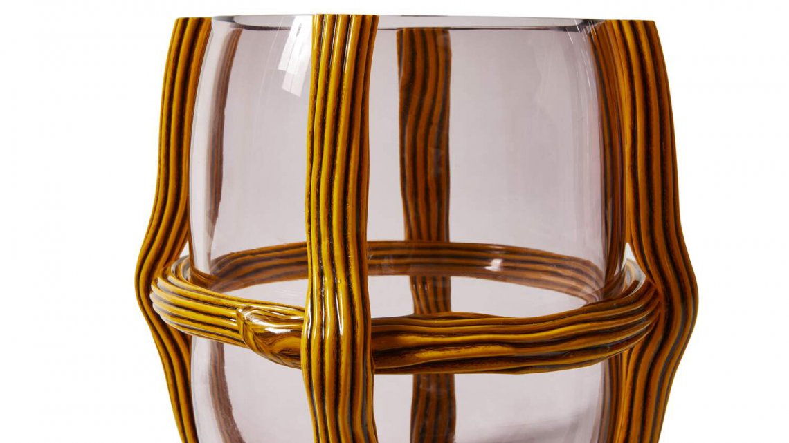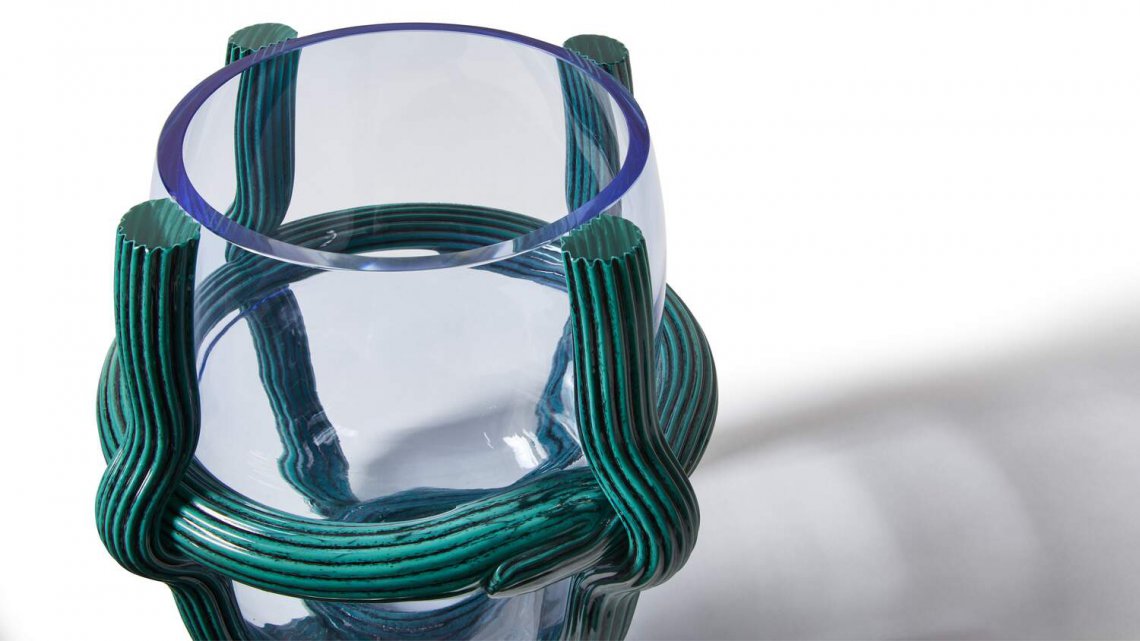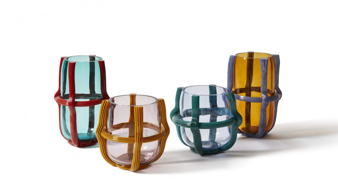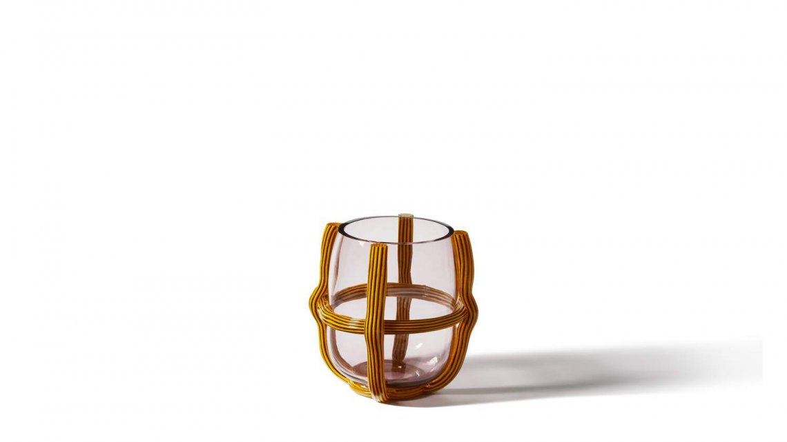 Sestiere花瓶將古老的穆拉諾玻璃手工技術(shù)與現(xiàn)代設(shè)計(jì)相結(jié)合:一個(gè)幾乎被繩網(wǎng)束縛起來(lái)的吹制玻璃泡,這種叫做“Morise”的繩子上裝飾有瀉湖地區(qū)典型的橫紋圖案。傳統(tǒng)的鮮艷色彩與干凈利落的設(shè)計(jì)相遇,并帶有重要的圖形印記。