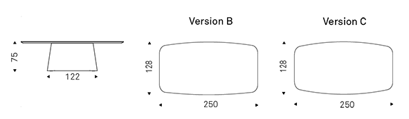 The Napoleon family of tables comes in numerous versions to meet the most varied aesthetic needs and optimally furnish a modern dining room.The central base has been produced using a cutting-edge ceramic modelling technique, which marks the boundary between before and after on the spectrum of possible outcomes offered by this ever more flexible material. This is the first appearance, in fact, of curved slabs in the Keramik collection, sculpted to create bases for ceramic tables with gracefully curved shapes and rounded edges.