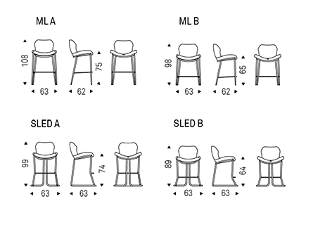 This family of chairs comprises 4 variants which differ in the shape and material used for the base. Rachel Wood has legs in fine wood, while Rachel ML with its steel legs is lighter and more manoeuvrable.