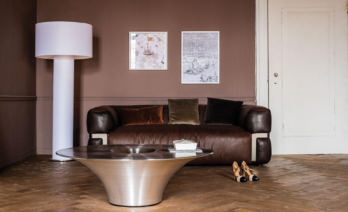 Coffee table in aluminium and satin stainless steel.