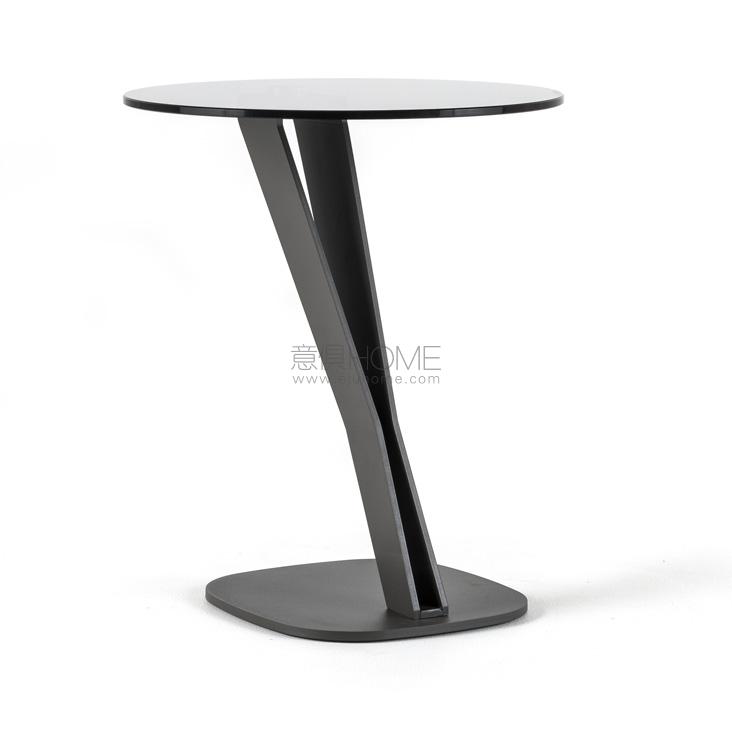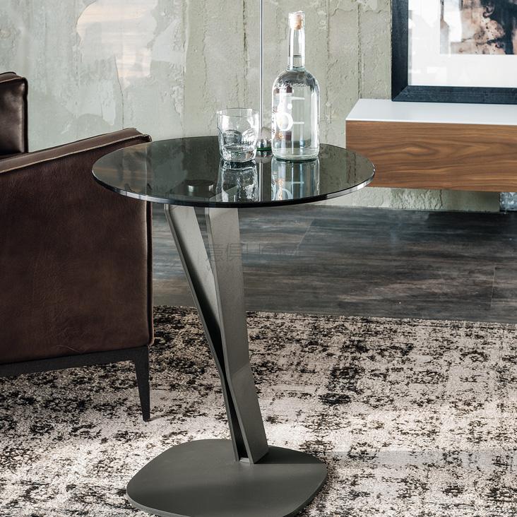 Sofa side table with base in graphite (GFM69) embossed lacquered steel. Clear or fumé glass top.