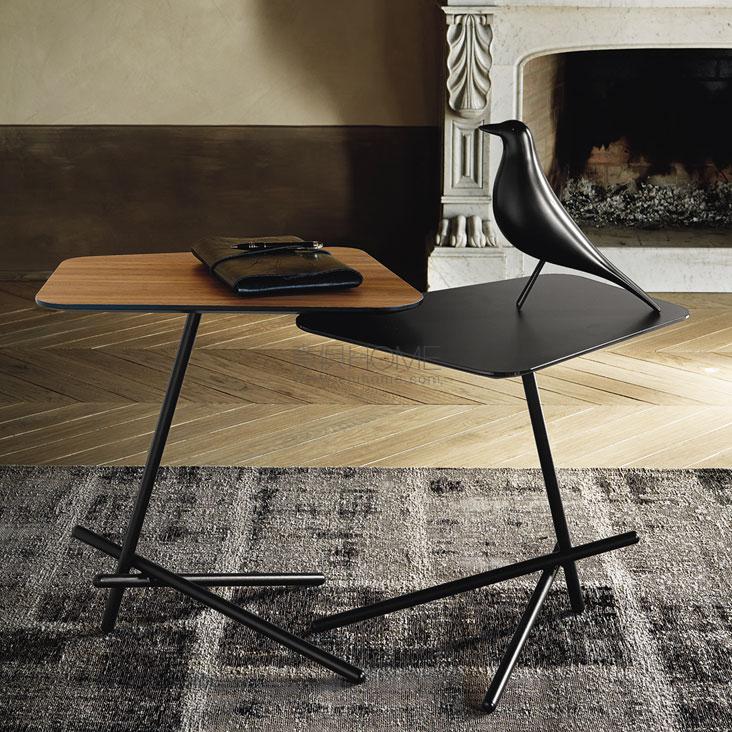 Coffee table with base in white (GFM71) or black (GFM73) embossed lacquered steel. Top in Canaletto walnut (NC), white or black painted extra clear frosted glass.