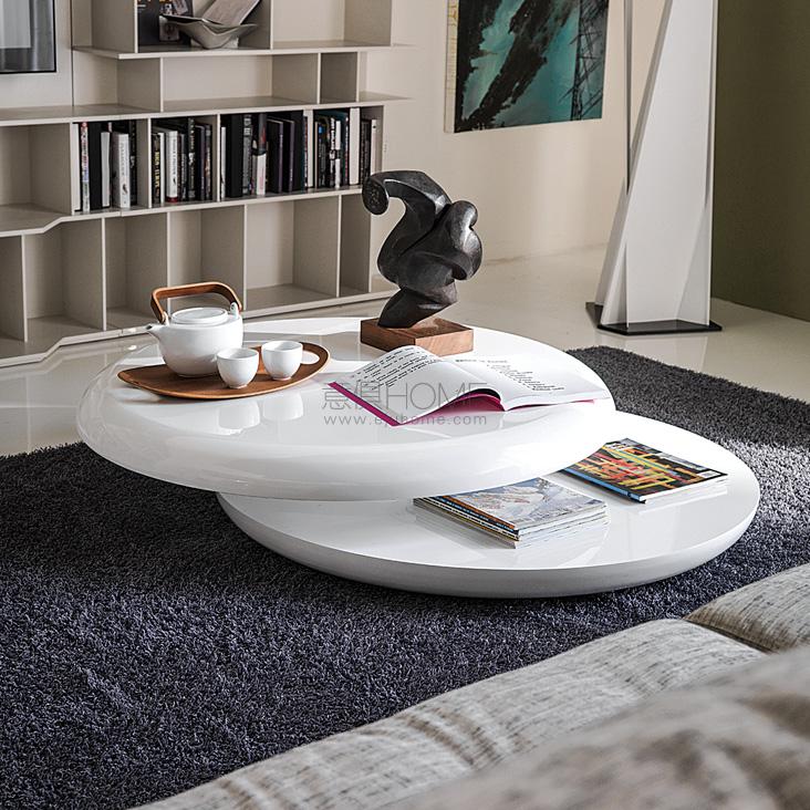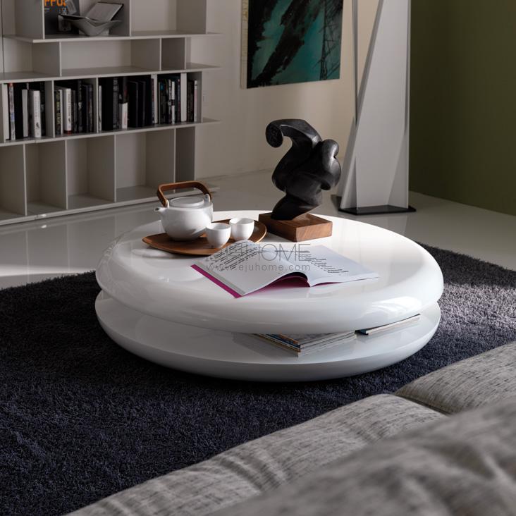 Coffee table with swiveling upper top in white polished (L7) lacquered wood.
