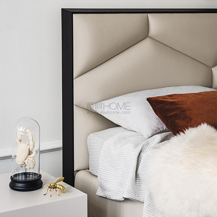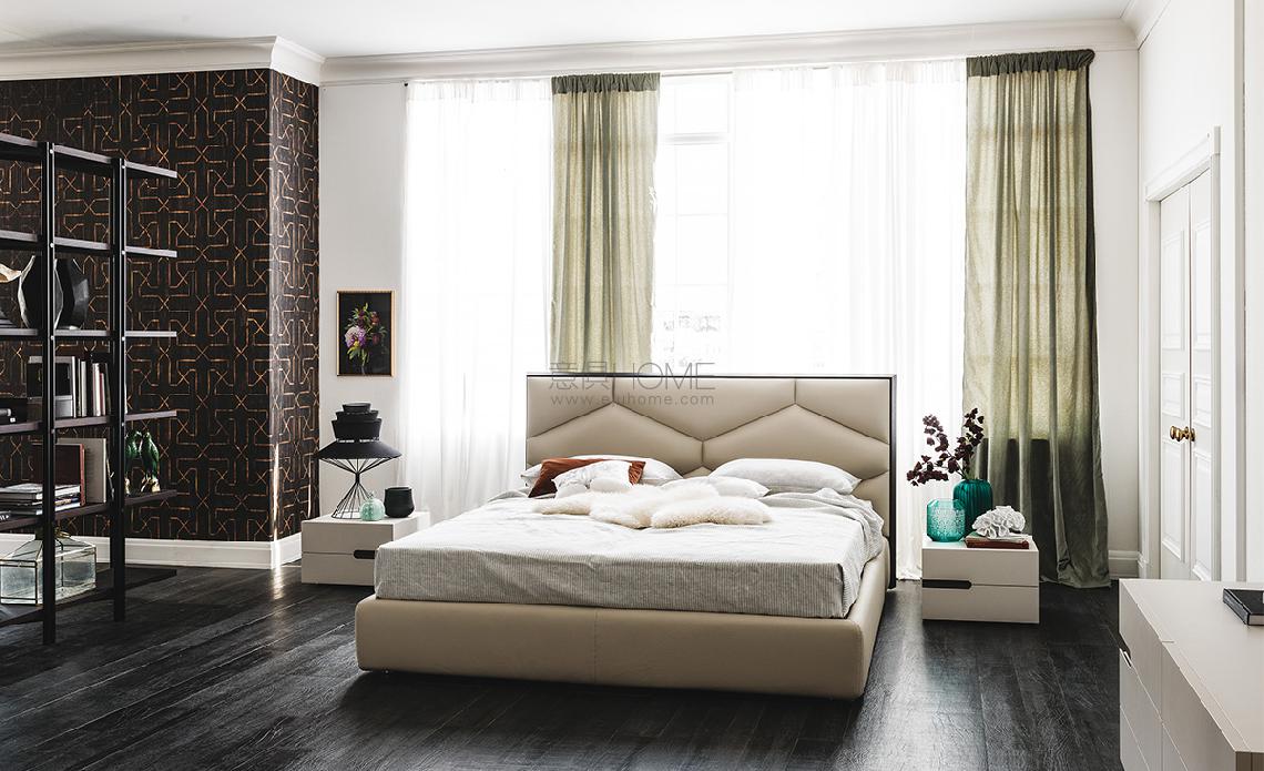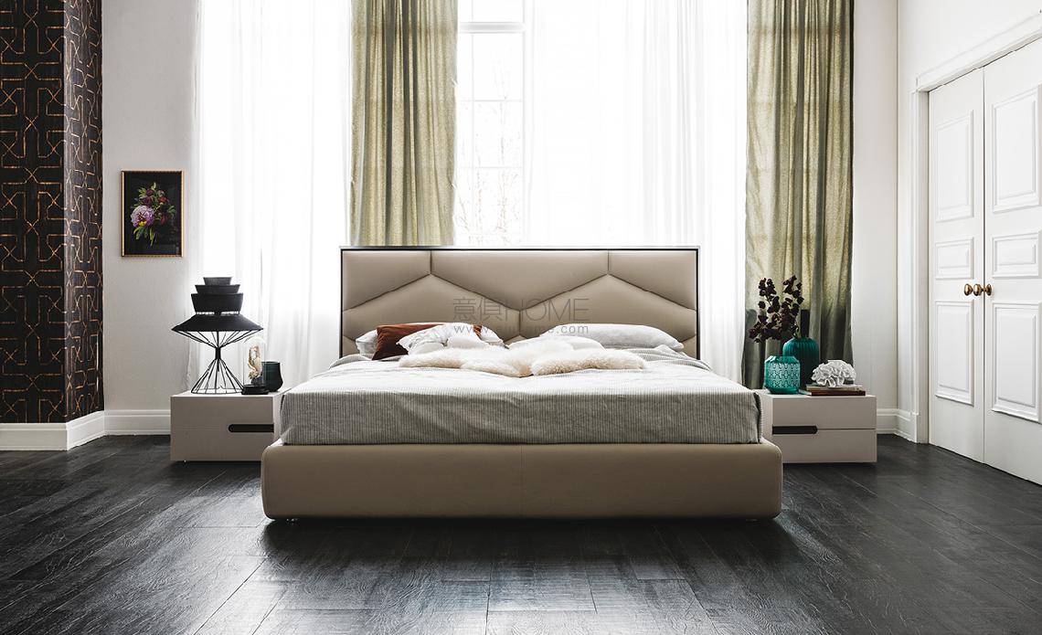 Upholstered bed covered in fabric, synthetic nubuck, micro nubuck, synthetic leather or soft leather as per sample card. Headboard profiles in Canaletto walnut (NC) or burned oak (RB). Slats included. Optional: pull-up slats with container.