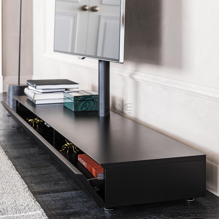 TV stand with 15° adjustable support, embossed white (GF71) or black (GF73) painted base and flap door. TV Max capacity: 40 kg. Pre-arranged for Vesa fitting 75, 100, 200, 300 and 400.