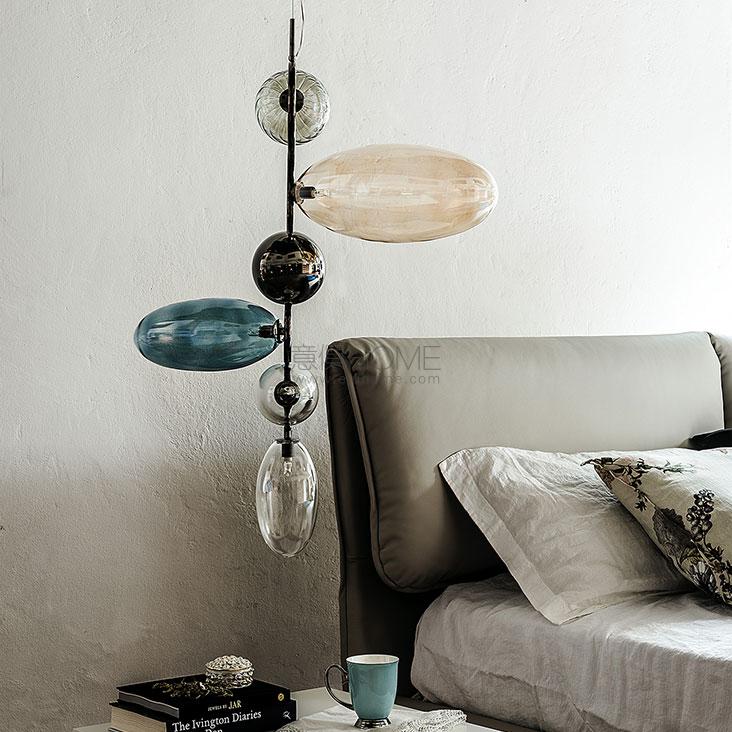 Ceiling lamp with black chrome steel frame (06). Lampshade in borosilicate transparent, smoked, light blue and amber glass. Bulb included.