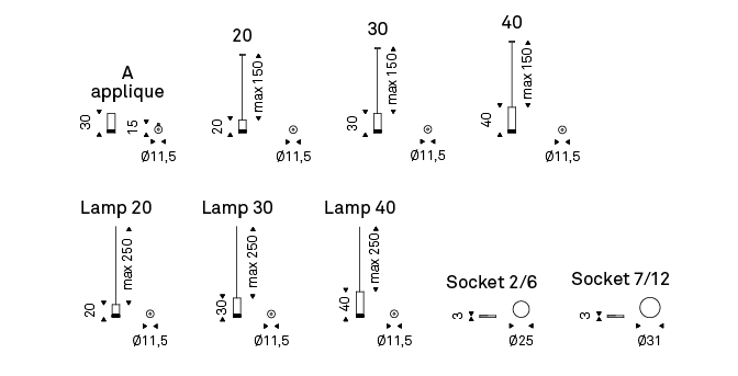 Ceiling lamp or wall lamp in satin bronze steel (15). 20/30/40: single plate. S2/6: round ceiling plate for 2/6 lampshades. S7/12: round ceiling plate for 7/12 lampshades. Bulb not included.