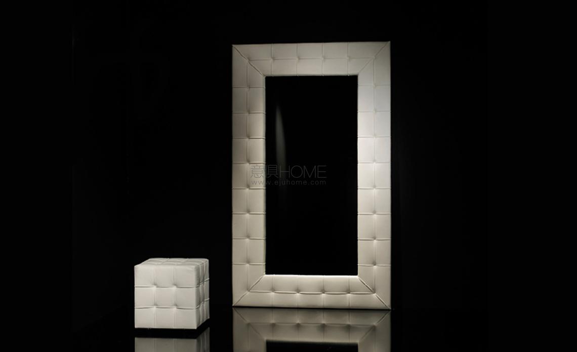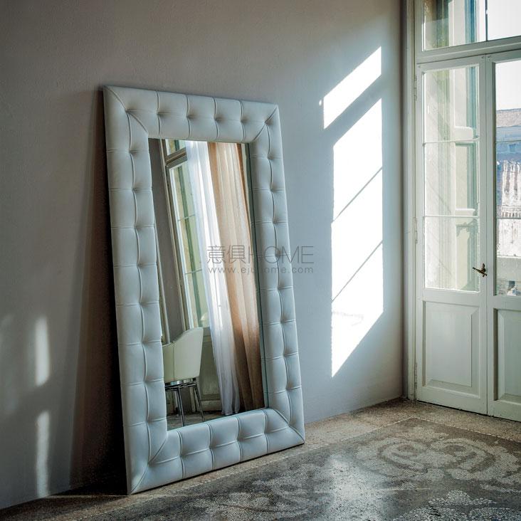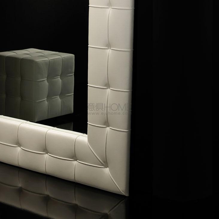 Mirror with upholstered frame, covered capitonnè in synhtetic leather or soft leather as per sample card. Mirror is equipped with plates for both horizontal and vertical installation.