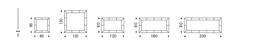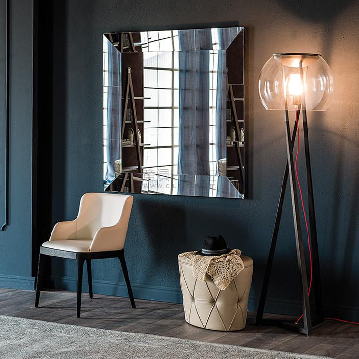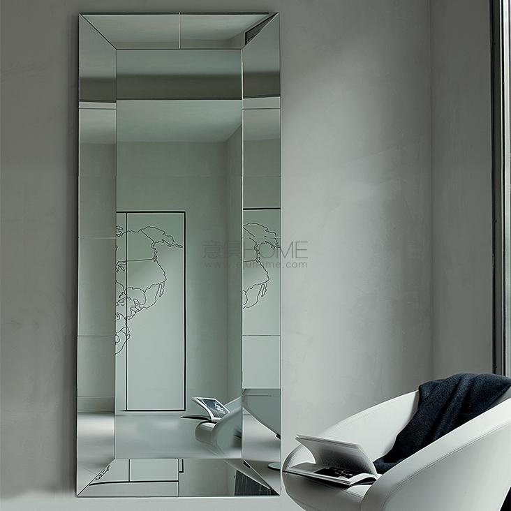 Wall mirror with mirrored or frosted frame or all fumé. Not suitable to be laid on the floor. Mirror is equipped with plates for both horizontal and vertical installation.