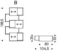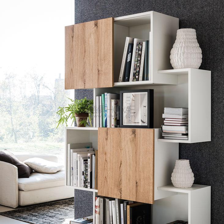 Bookshelves container with embossed graphite (GF69) or white (GF71) MDF frame, sliding doors in embossed white (GF71), graphite (GF69), grey (GF30), Canaletto walnut (NC), natural oak (RN) or Brushed Bronze MDF. Max capacity: 60 kg spread load.