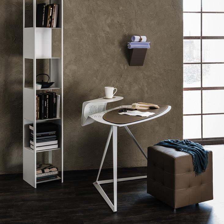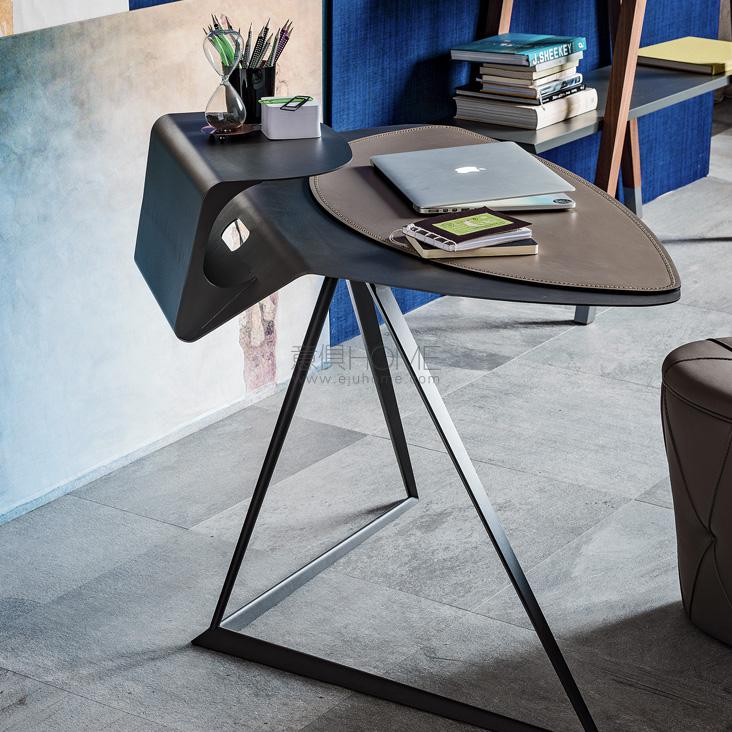 Desk with frame and top in titanium (GFM11), bronze (GFM18), graphite (GFM69) or white (GFM71) embossed lacquered steel. Leather pad as per sample card.