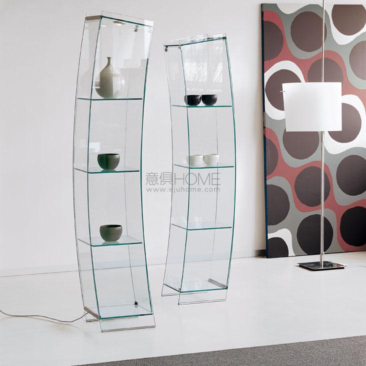 Open showcase in clear glass and polished stainless steel details. Max capacity: each shelf kg 7.