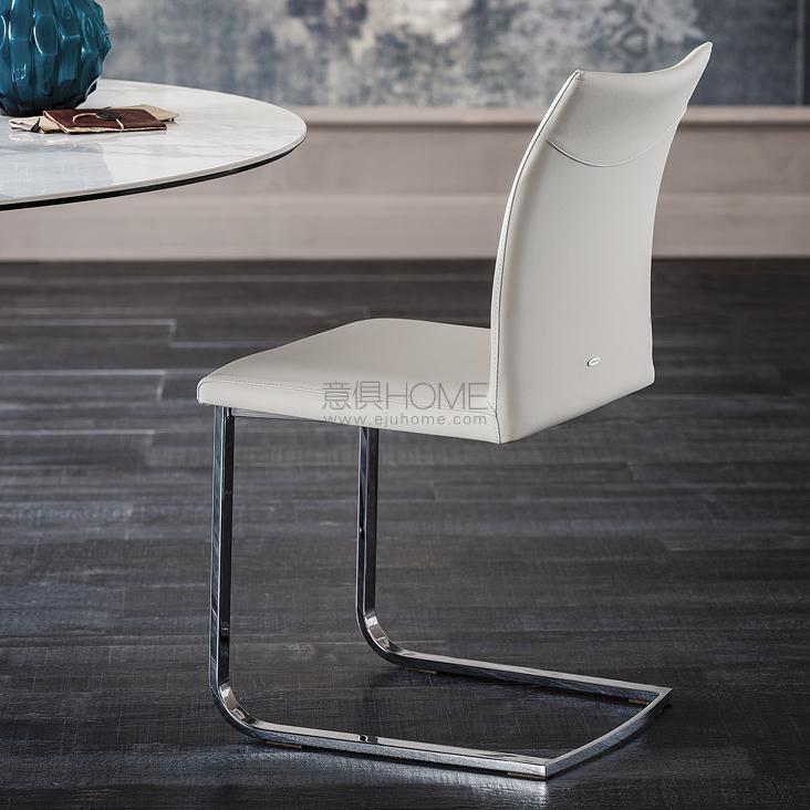 Chair with cantilever frame in chromed steel (08). Upholstered seat in fabric, synthetic nubuck, micro nubuck, synthetic leather or soft leather as per sample card. The cover is not removable.