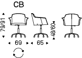 Swiveling chair with or without arms, adjustable in height and with castors. Base with 5 spokes in polished aluminium, column and gas piston in chromed steel (08) or with base and column in matt black aluminium and gas piston in chromed steel (08). Seat and back upholstered in fabric, synthetic nubuck, micro nubuck, synthetic leather or soft leather as per sample card.