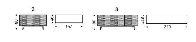 Sideboard 2 or 3 doors in lacquered graphite (GF69), white (GF71), black (GF73) embossed wood or lacquered titanium (M11) wood. Embossed steel base in the same color or lacquered titanium. Doors covered and quilted in synthetic leather or soft leather as per sample card with embossed titanium (GFM11) aluminum profiles. Internal clear glass shelves. Optional: internal drawer in each door. Optional: top in frosted glass painted in the same color of the structure.