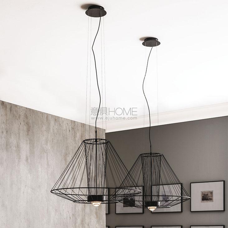 Ceiling lamp with frame in matt black (OP17) steel and black caoutchouc extensible lampshade. Bulb included.