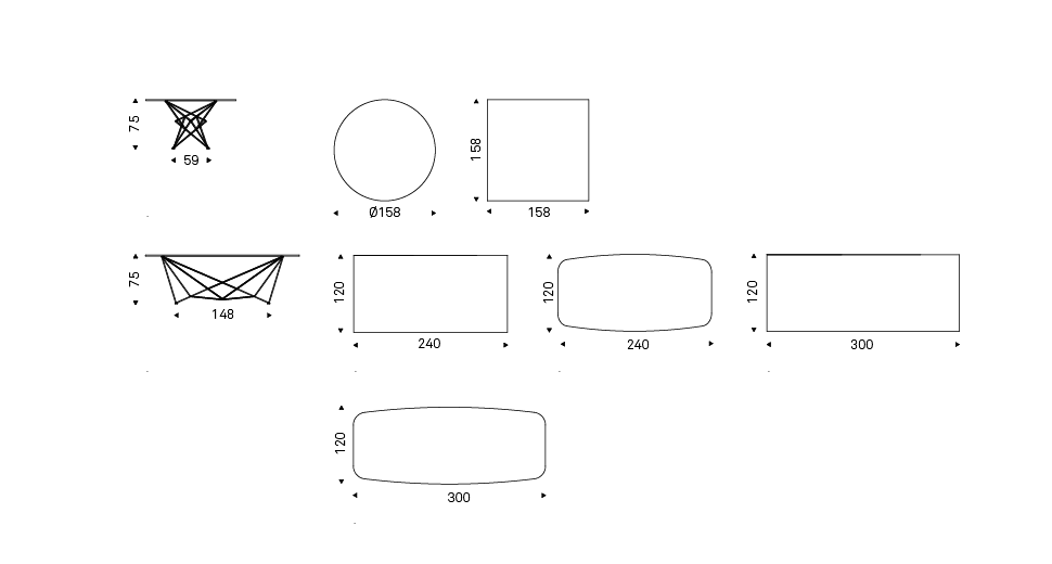Outdoor table with titanium (GFM11), graphite (GFM69) or white (GFM71) embossed lacquered steel base. 12mm ceramic top in matt Golden Calacatta (OD05).