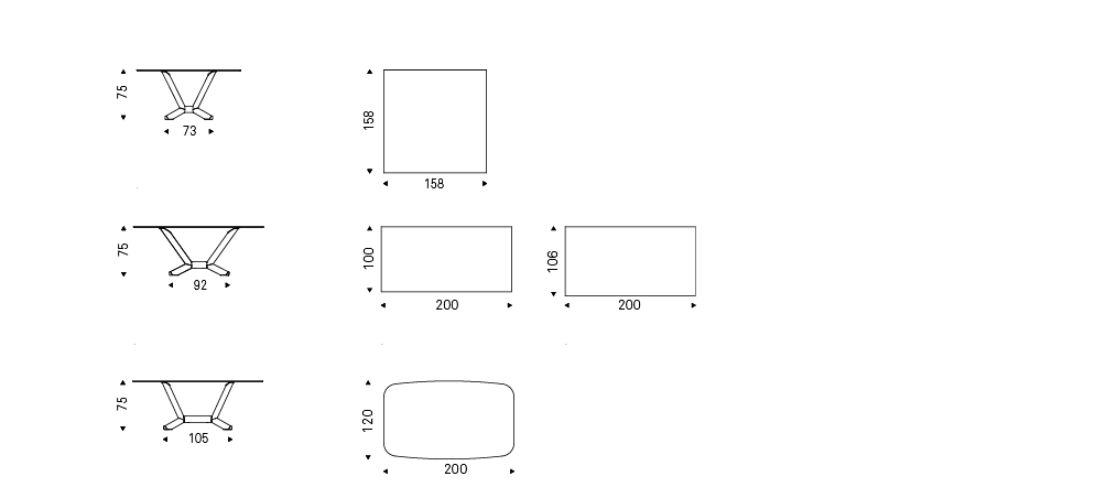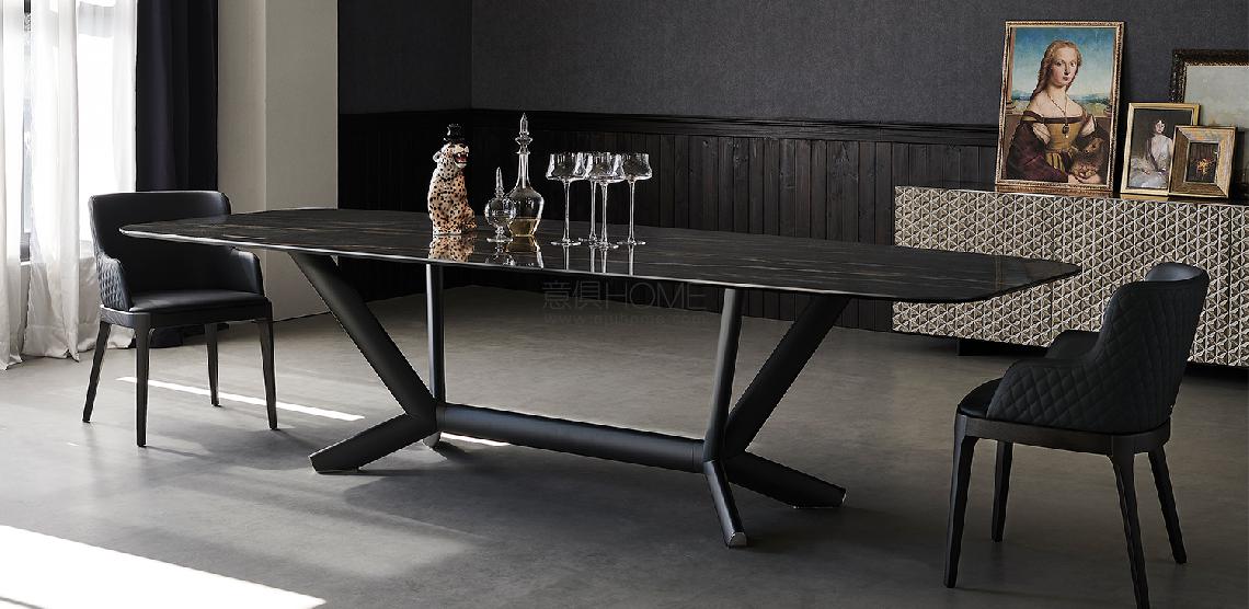 Table with base in titanium (GFM11), bronze (GFM18), graphite (GFM69) or black (GFM73) embossed lacquered steel, Brushed Bronze or Brushed Grey. Top in ceramic Marmi Calacatta (KM01), Alabastro (KM02), Ardesia (KM04), matt Golden Calacatta (KM05), glossy Golden Calacatta (KM06), matt Portoro (KM07), glossy Portoro (KM08), glossy Sahara Noir (KM09), Emperador (KM10), Makalu (KM11), Breccia (KM12) or Arenal (KM13).
