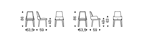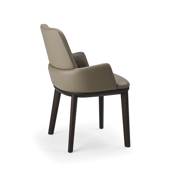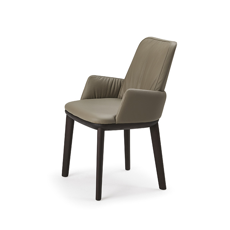 Chair with or without arms with frame in natural ashwood (frN), Canaletto walnut stained ashwood (frNC), burned oak stained ashwood (frRB) or open pore matt white (fr71) or black (fr73) ashwood. Seat and back upholstered in fabric, synthetic nubuck, micro nubuck, synthetic leather or soft leather as per sample card. The cover is not removable.