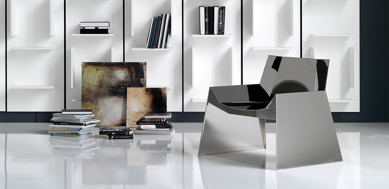 Polished stainless steel armchair.