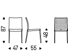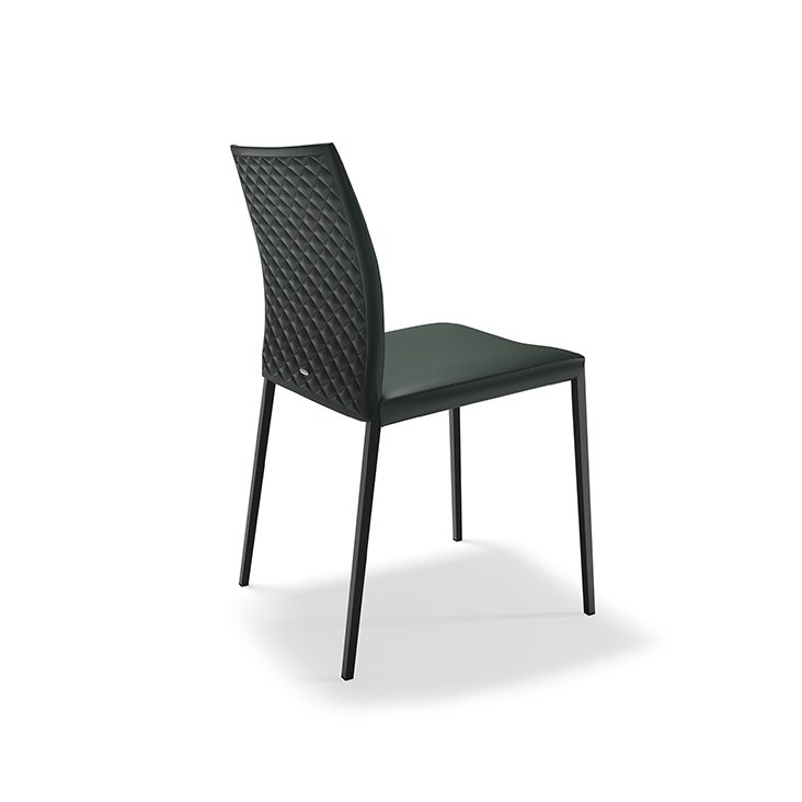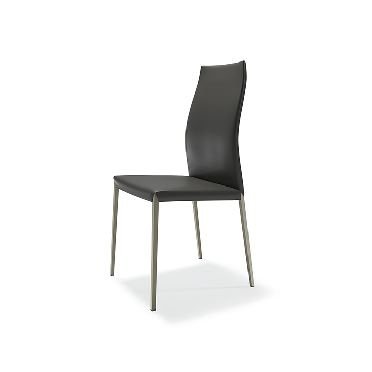 Upholstered chair with steel structure in chromed (08) or black chrome (06), white (OP71), graphite (OP69) or titanium (GFM11) finish and covered in synthetic leather, synthetic nubuck or soft leather as per sample card. Quilted seatback cover. The cover is not removable.