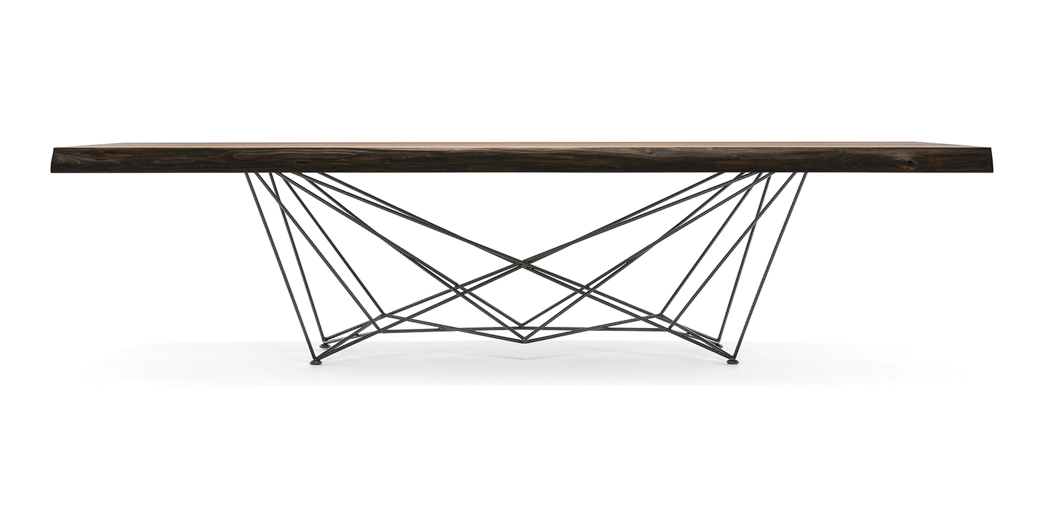 Table with titanium (GFM11), graphite (GFM69), white (GFM71) or black (GFM73) embossed lacquered steel base. Top 12mm thick in extra clear bevelled glass with artistic decorative printing in two different colours (CY01, CY02).
