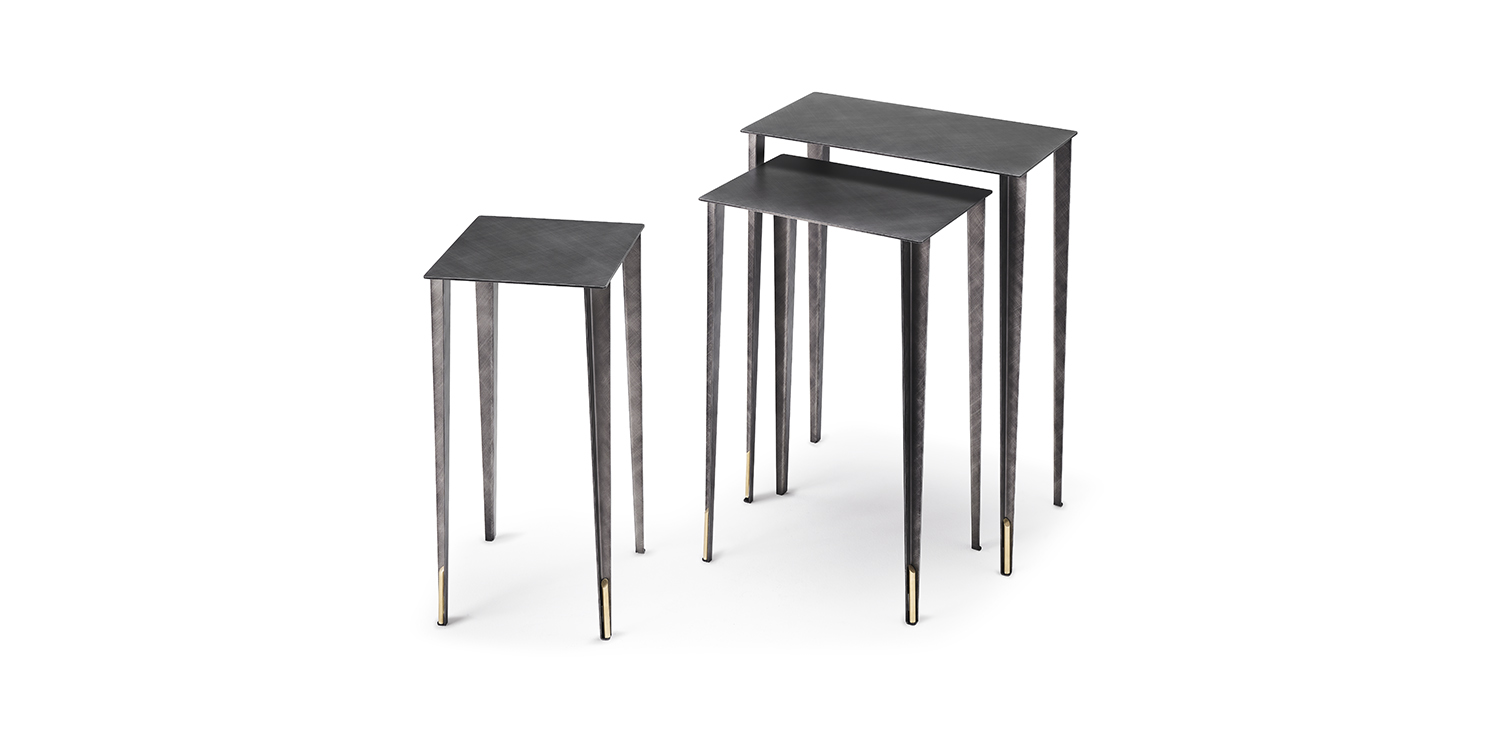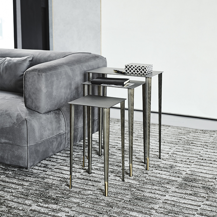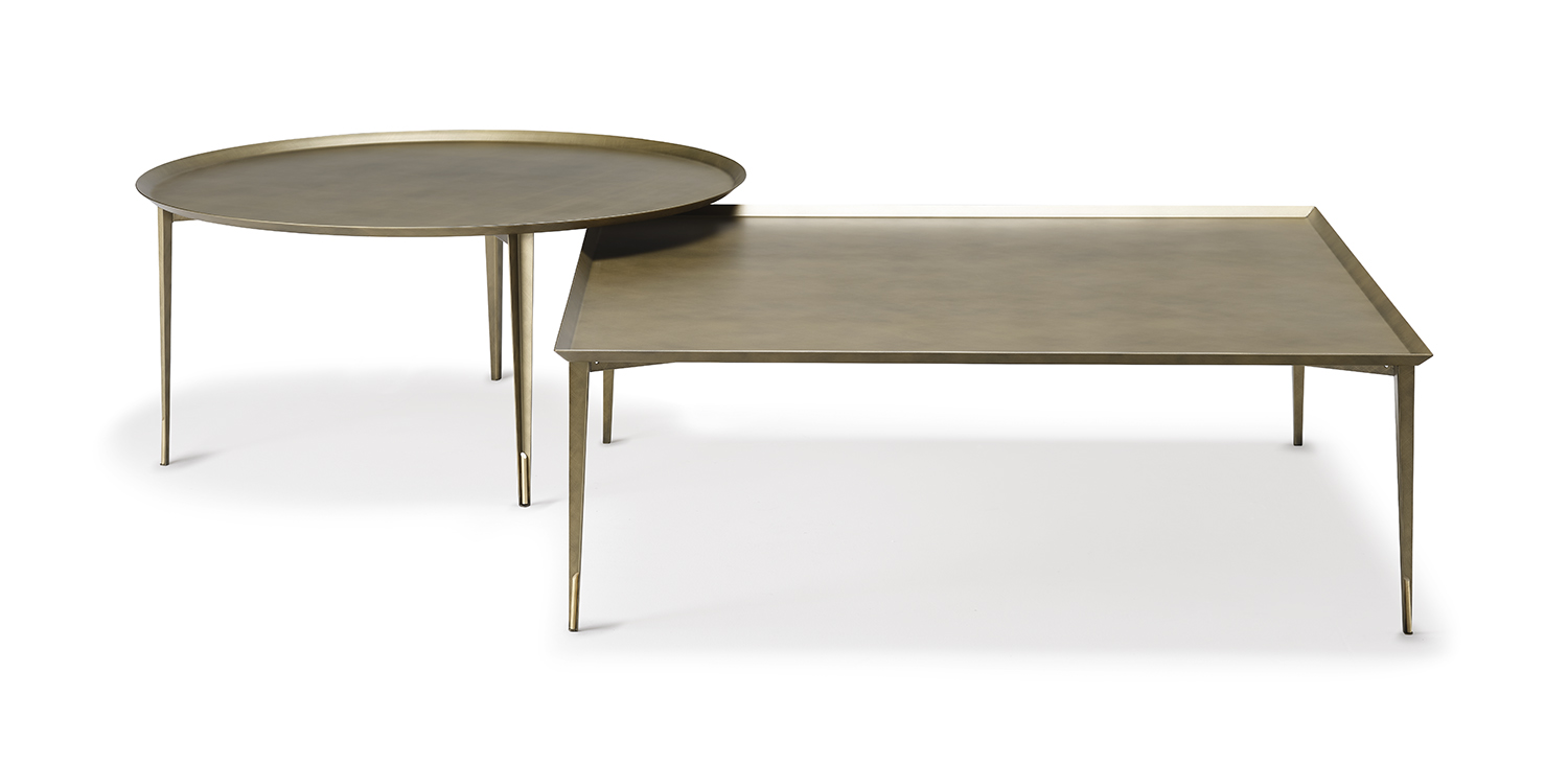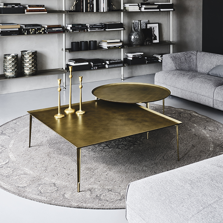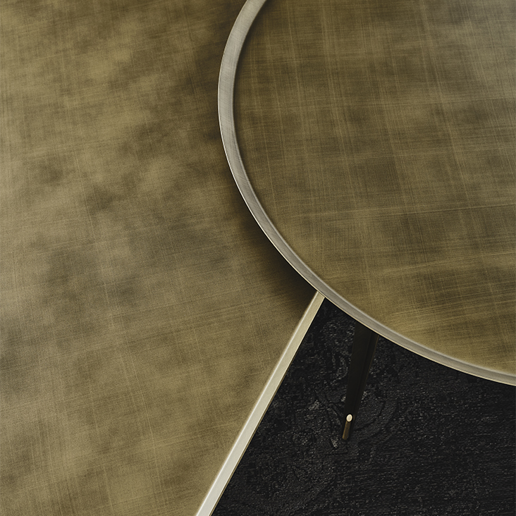 Coffee table with structure in Brushed Brass, Brushed Bronze or Brushed Grey lacquered steel and brass details.