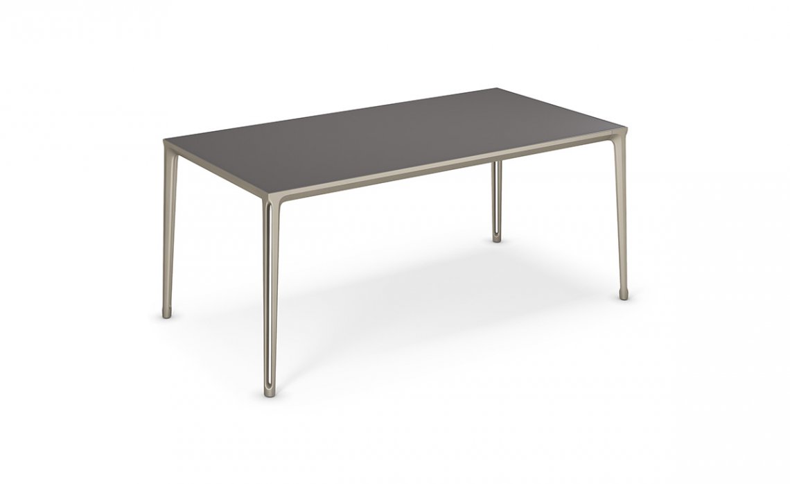 Boulevard is a design dining table with a disarming simplicity. It fits into a residential setting with ease and contemporary charm. The legs have a vertical cavity, enhanced by sophisticated varnished finishes chosen from among different intense or bright shades. The same finish rigorously frames the top, available in glass or ceramic.