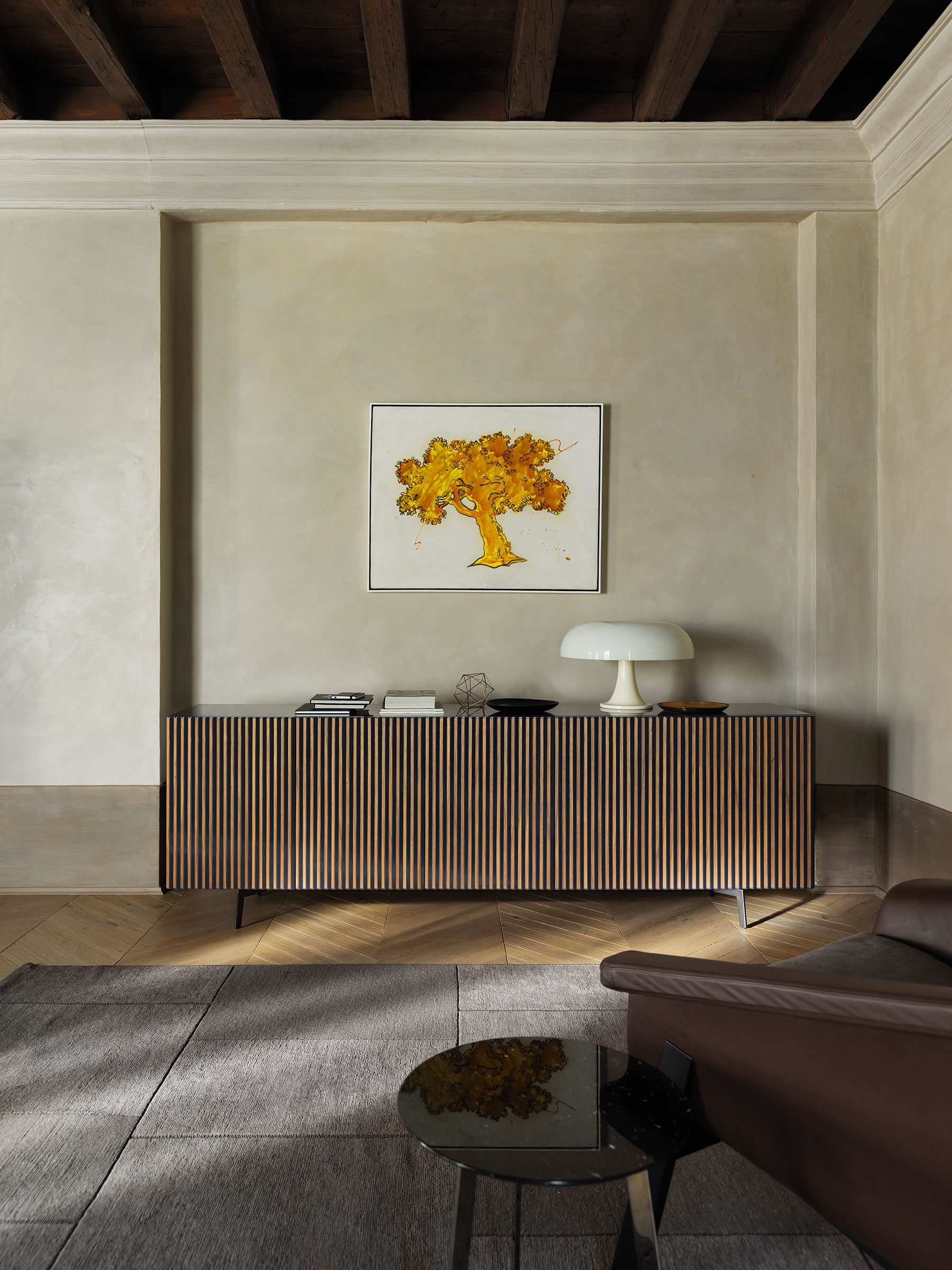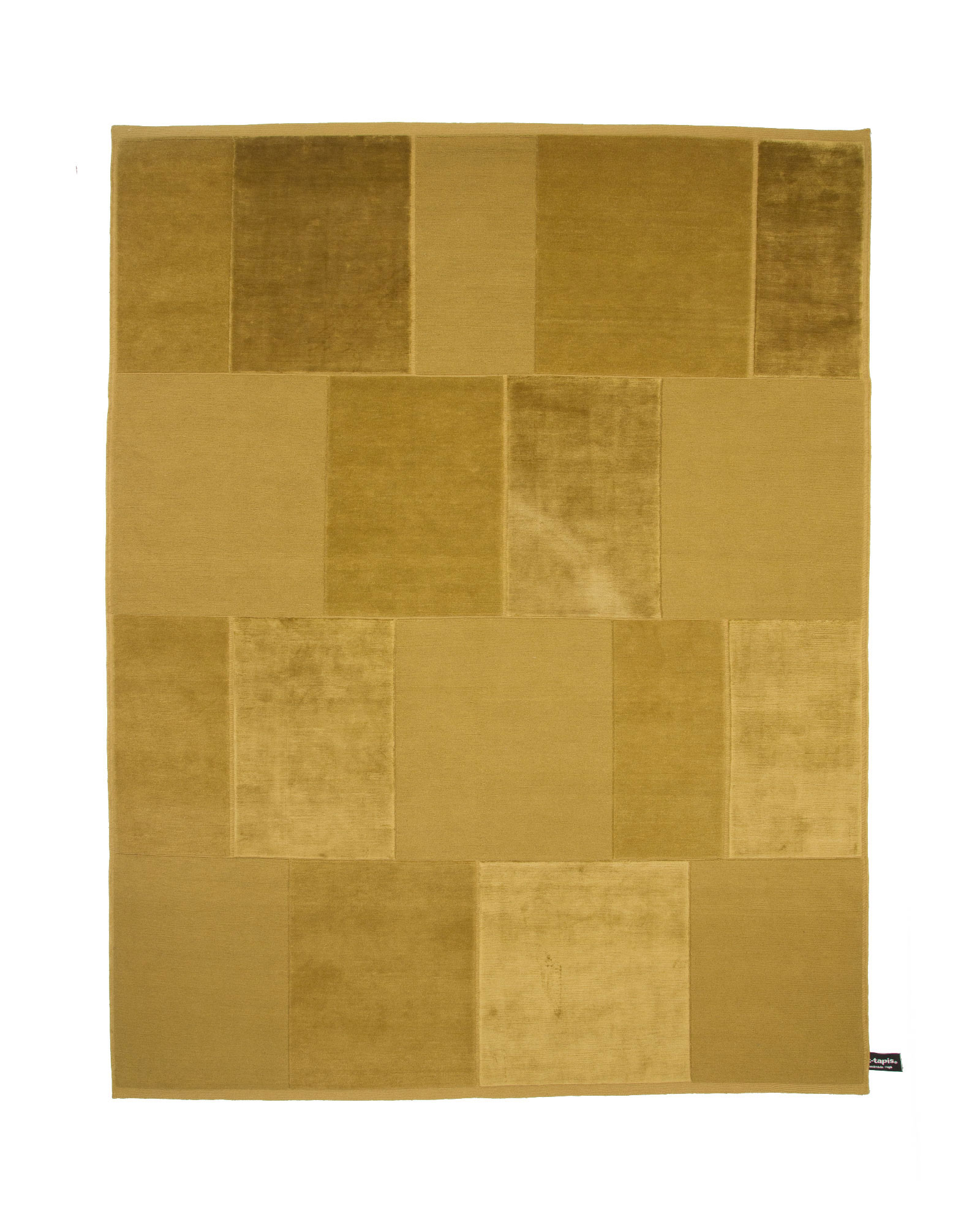 Architectural in design, simple and delicate tonal variations are created by a combination of materials and knotting techniques. Far from patchwork, nothing on this rug is haphazard, the architect designers stay true to their trade and have created a rug where every knot has its place. Panels of pure silk are counter-balanced by panels of thick Himalayan wool made from 2 different knotting techniques and the spaces between the panels show the nude dyed cotton warp.