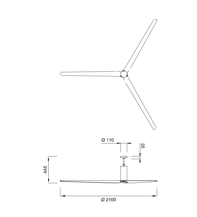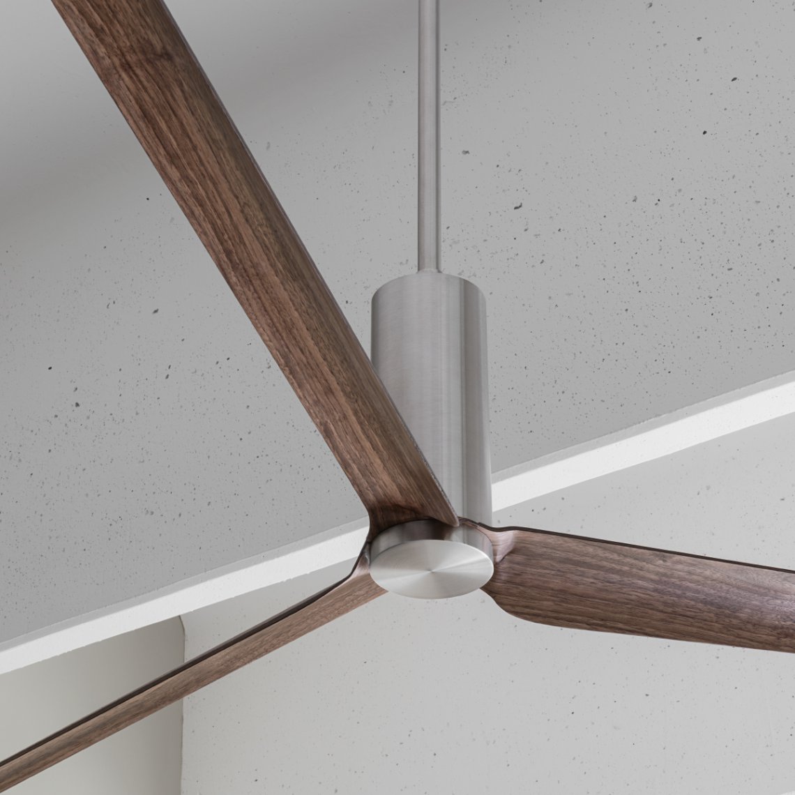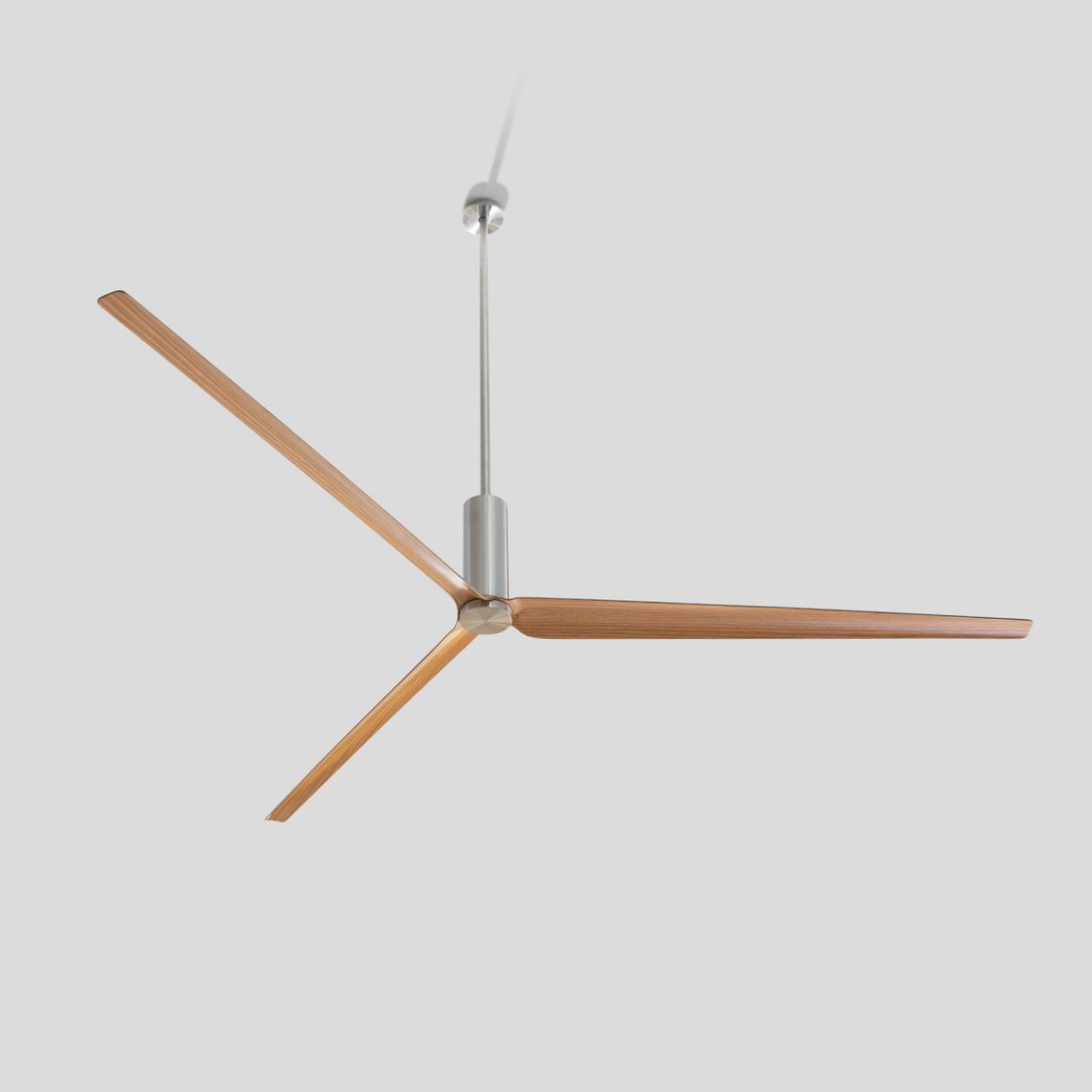 Ceiling fan (? 2100 mm) in AISI 316L stainless steel, with wood and carbon fiber blades, natural wood essence or lacquered. Remote control included. Product suitable for indoor installation