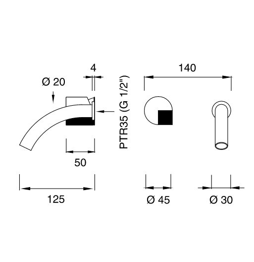 Wall mounted mixer with spout L. 125 mm