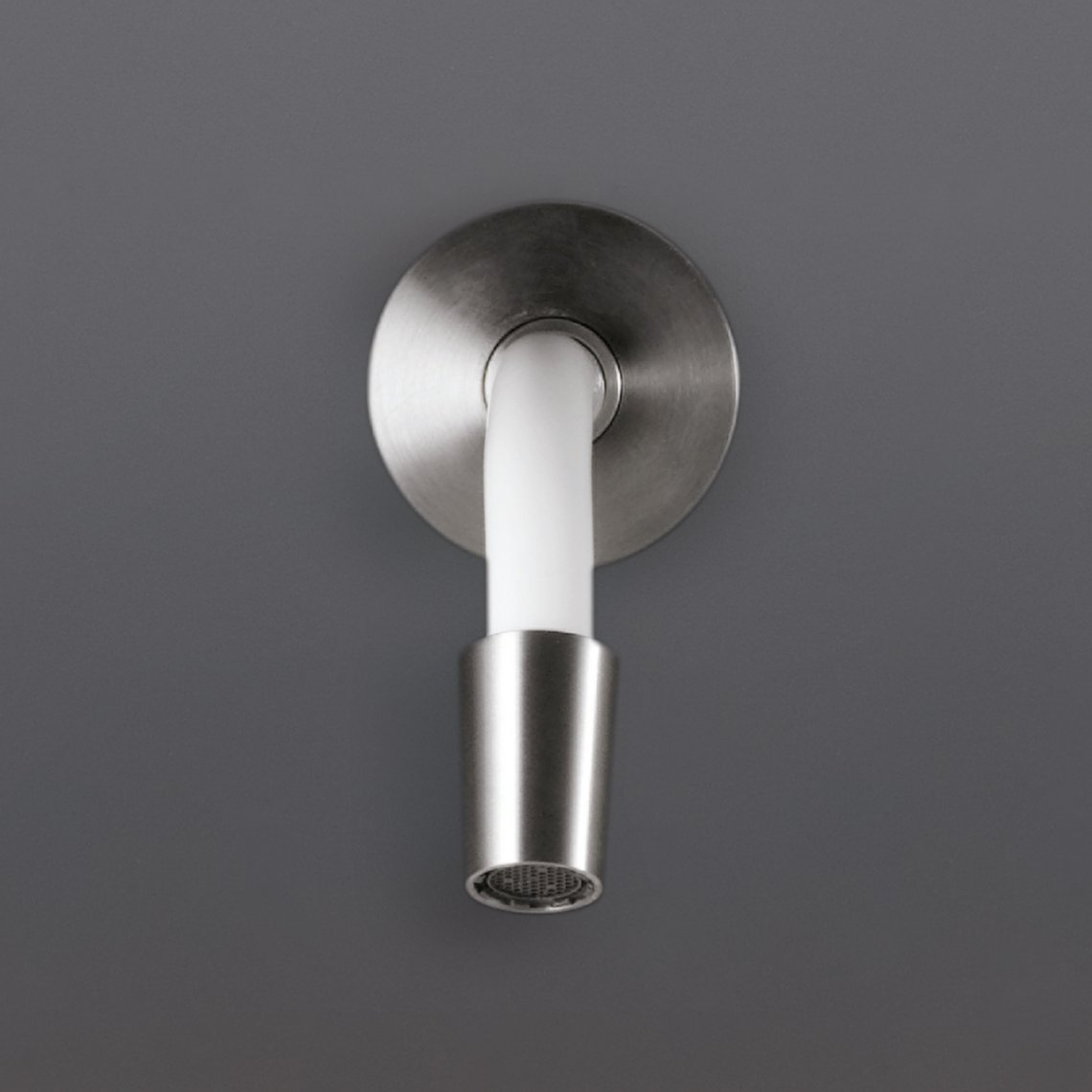 Wall mounted flexible spout covered with coloured silicone rubbe