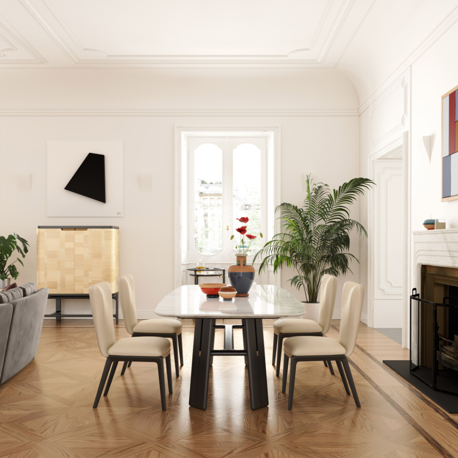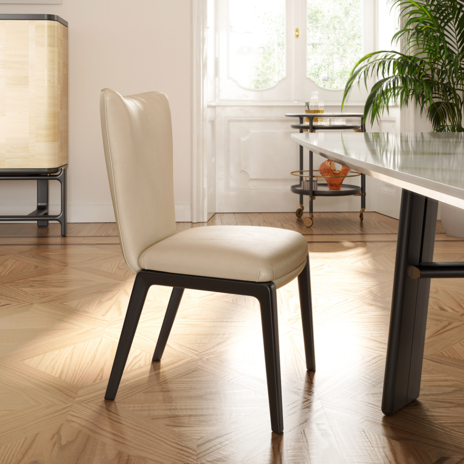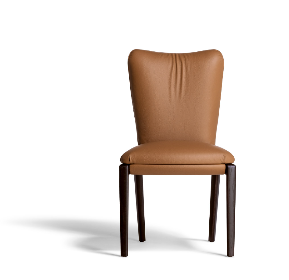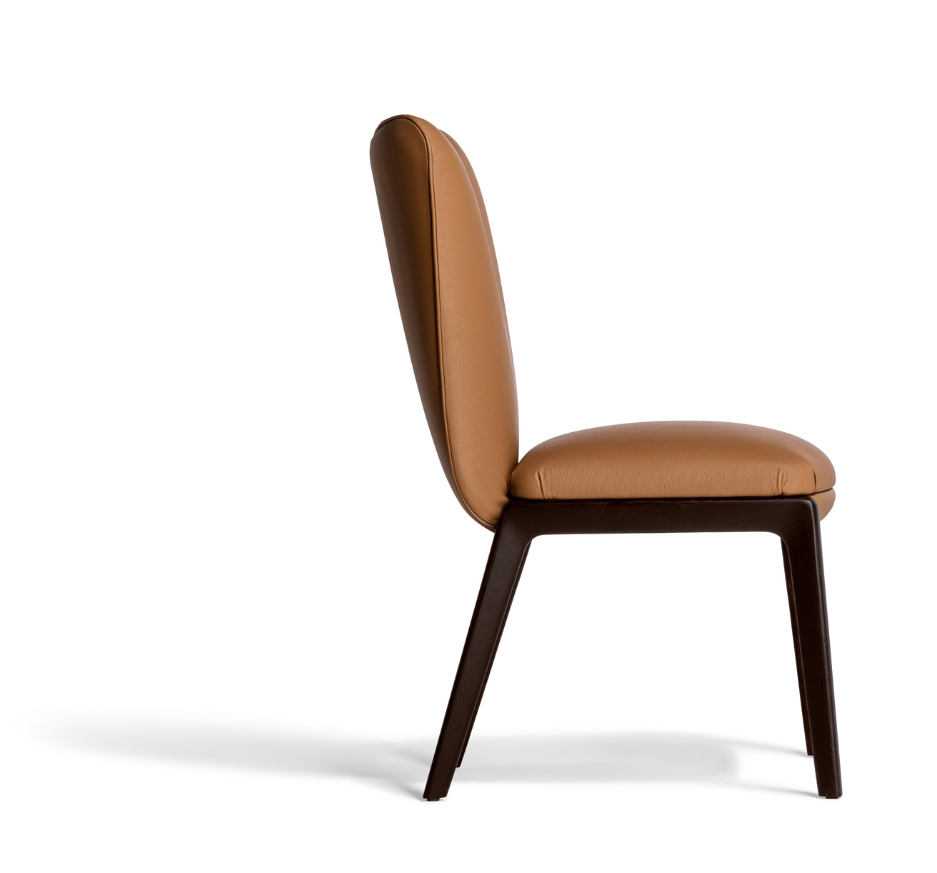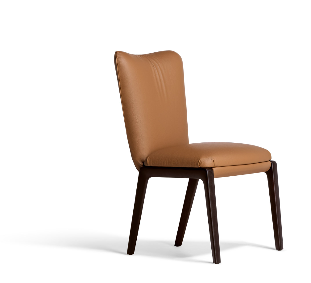 La sedia dal pranzo DUO ha lo schienale alto e un comodo sedile dalla ricca imbottitura, completamente rivestito in Pelle Frau? o tessuto, che aggiunge un surplus di comfort e invita al relax e alla conversazione. Le gambe in legno massello di frassino sono disponibili in varie finiture.