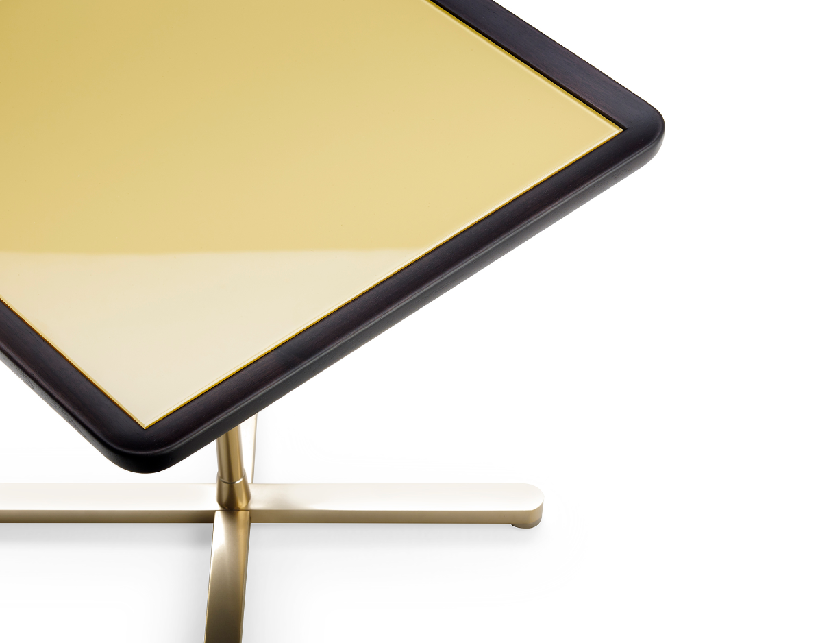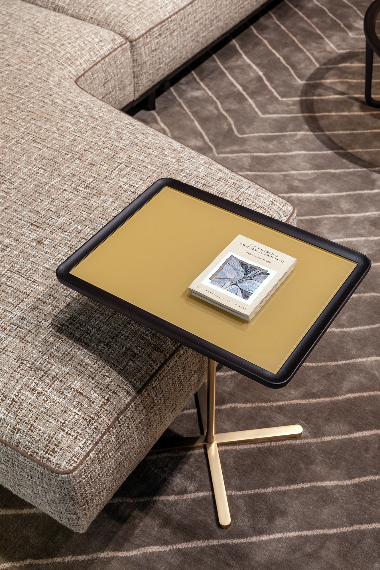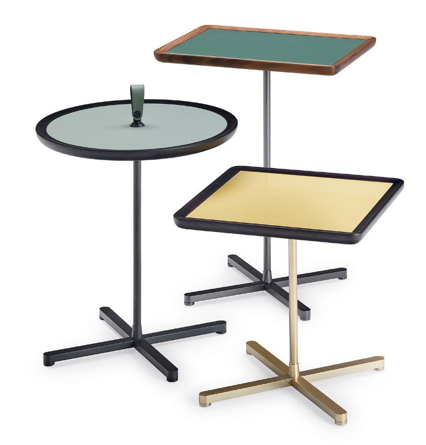 La struttura del tavolino Galimede Light, disponibile in diverse altezze e con finiture nero, oro, oro rosa, bronzato, sorregge un piano di forma quadrata, rettangolare o rotonda in legno, legno e vetro o legno con fondo in pelle per accogliere oggetti ed elementi diversi. Nella versione con piano in pelle è possibile aggiungere al centro una maniglia che permette al tavolino di essere spostato con facilità, adeguandosi a diversi contesti e necessità: nasce così Galimede Light con maniglia.