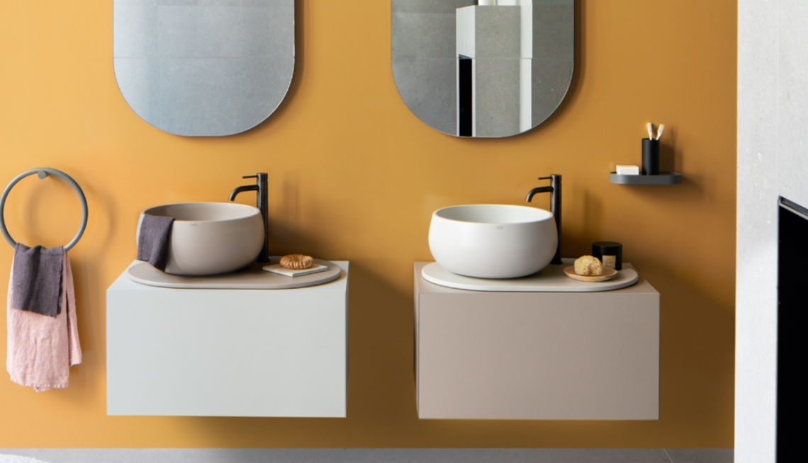Delfo 76,更加通用。盡管體積小,Delfo 仍保持其優(yōu)雅和功能。全新 76 厘米版本干爽而必不可少,它甚至可以在不犧牲存儲(chǔ)容量的情況下增強(qiáng)最小的空間。木制抽屜柜可選擇多種漆面或木質(zhì)飾面,保留其自身的容量,為每間浴室?guī)硎孢m實(shí)用的氛圍。橢圓形陶瓷臺(tái)面上盆的形式純凈,傳達(dá)了這種高貴材料的魅力和實(shí)用性。憑借顏色組合的新可能性,將兩種元素調(diào)制為“Acque”和“Terre di Cielo”的光面或啞光色調(diào)。