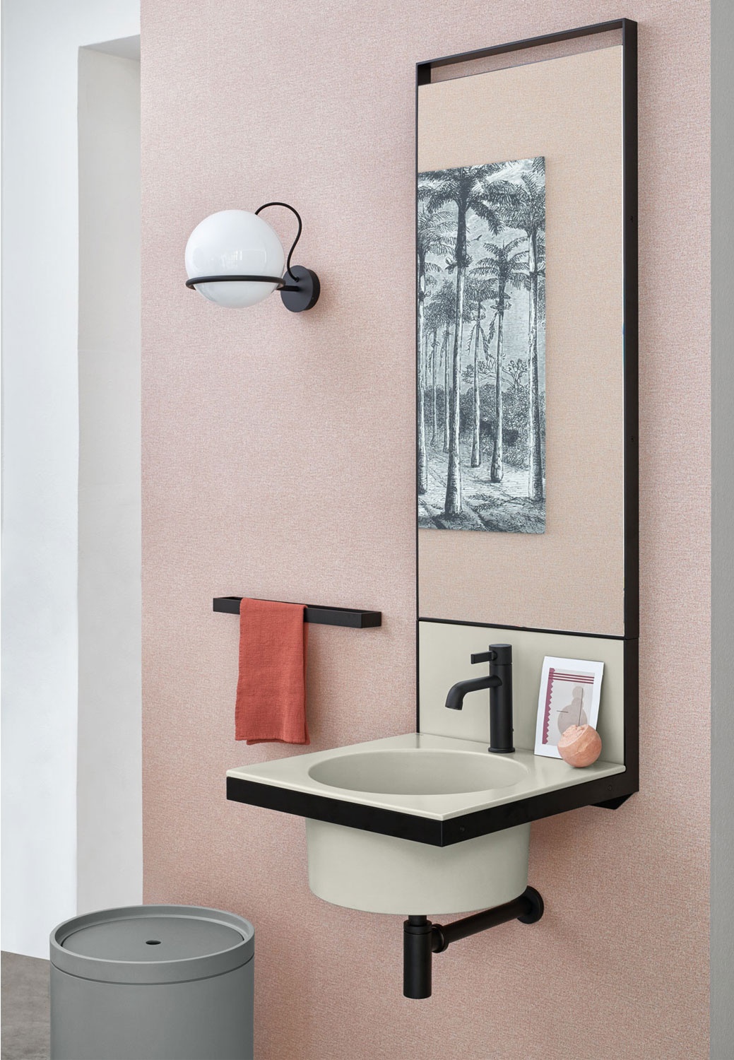 洗臉盆的模塊化系統(tǒng),采用不同的陶瓷飾面,安裝在涂漆鋼壁掛式框架上,帶有陶瓷后擋板。 鏡子、毛巾架、金屬托盤和其他 LivingTec? 配件完善了產(chǎn)品。