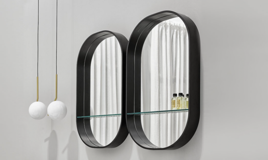 帶玻璃擱板的鏡子,擱板上有 LED 燈