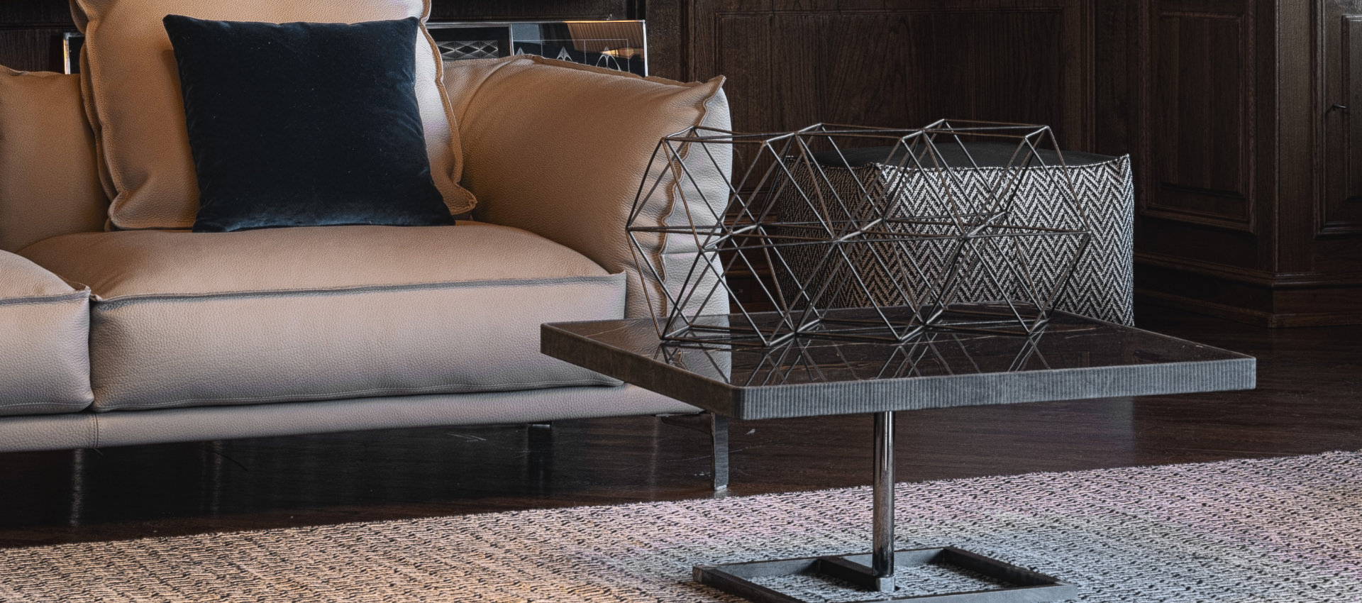 top with thin continuous perimeter edge, covered in Setanil or Natural leather