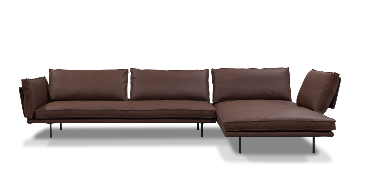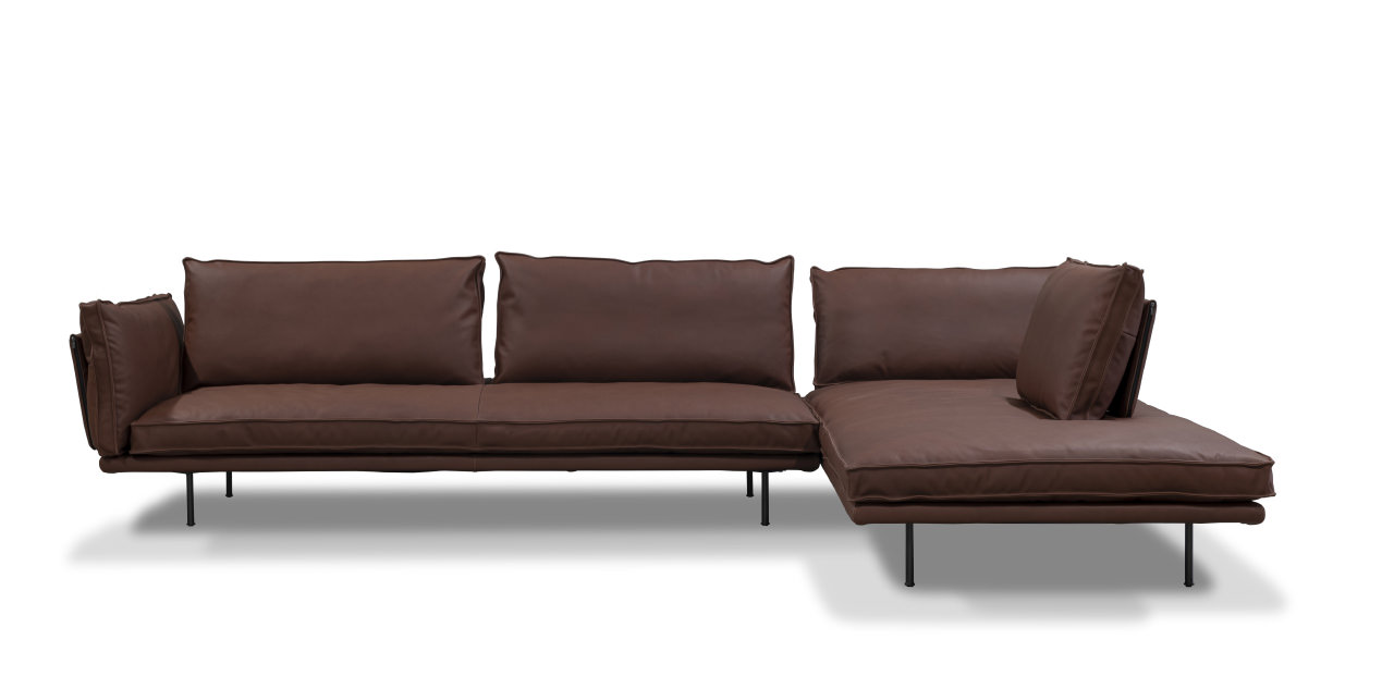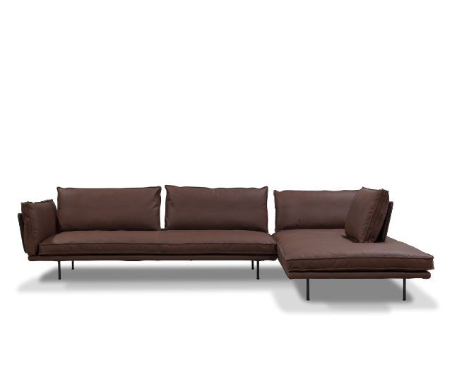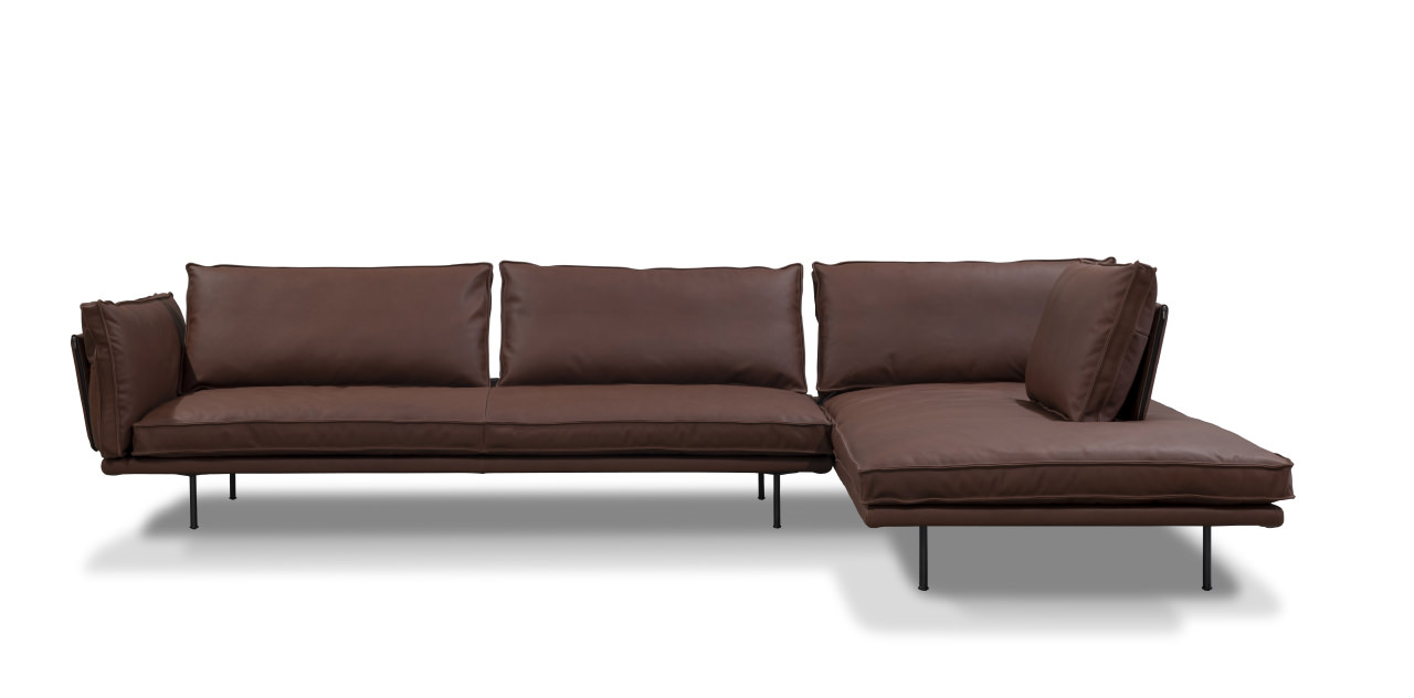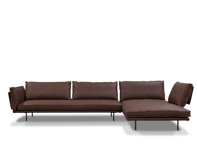 modular sofa with metal structure and wooden frame with ribbons support
