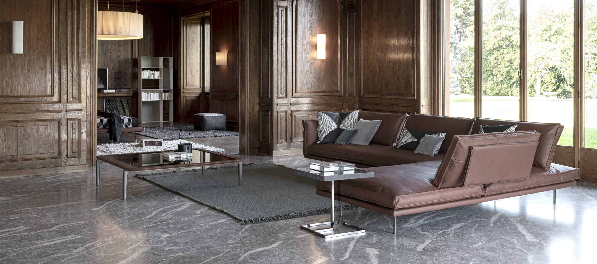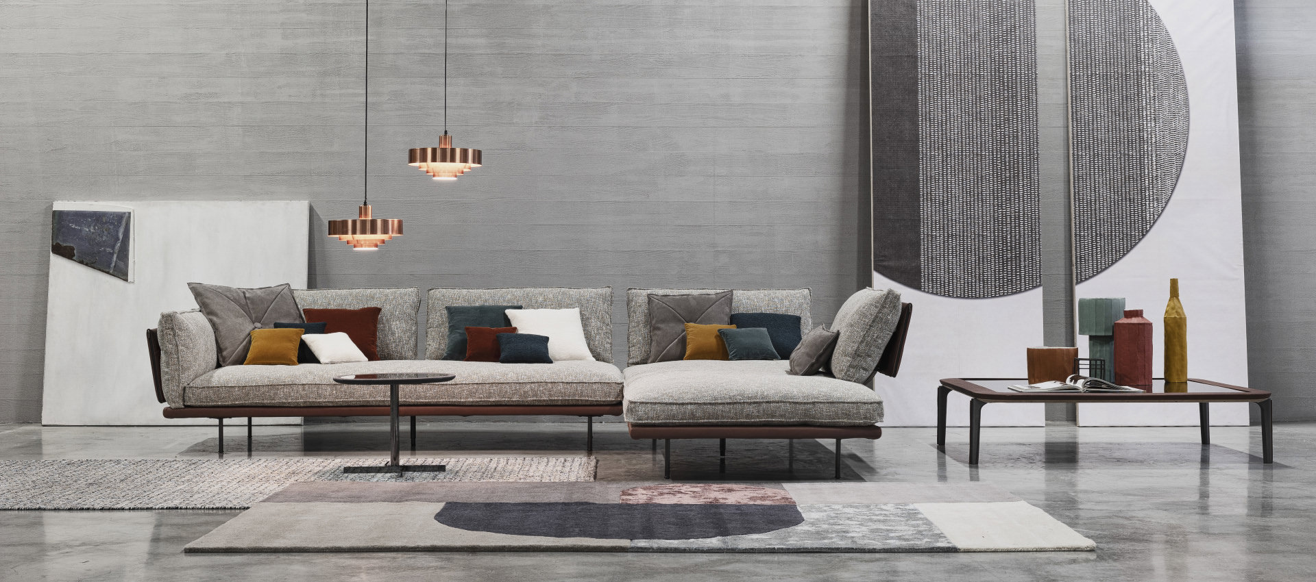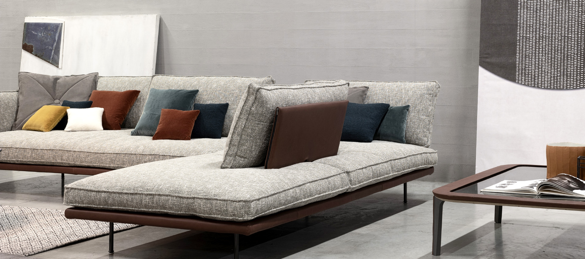 modular sofa with metal structure and wooden frame with ribbons support