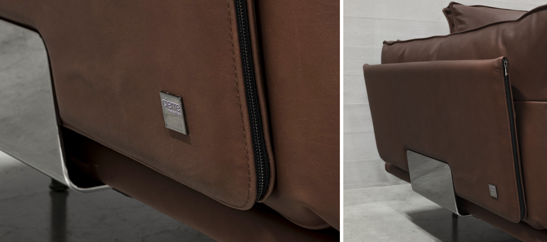 wooden armrests covered with polyurethane foam and chromed metal plate