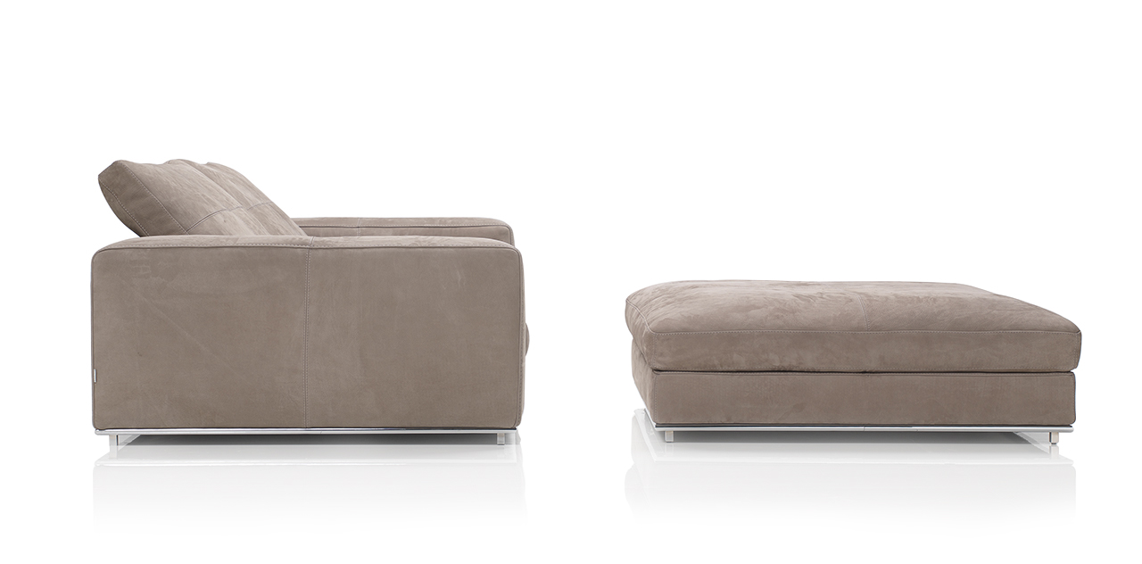 expanded. The wooden armrest is covered with polyurethane foam and feather