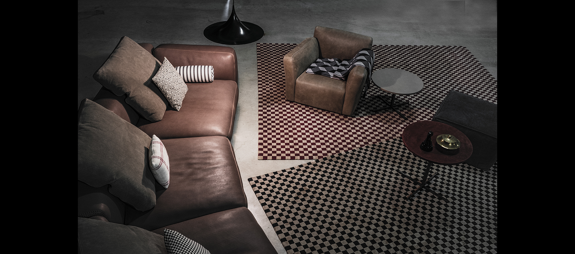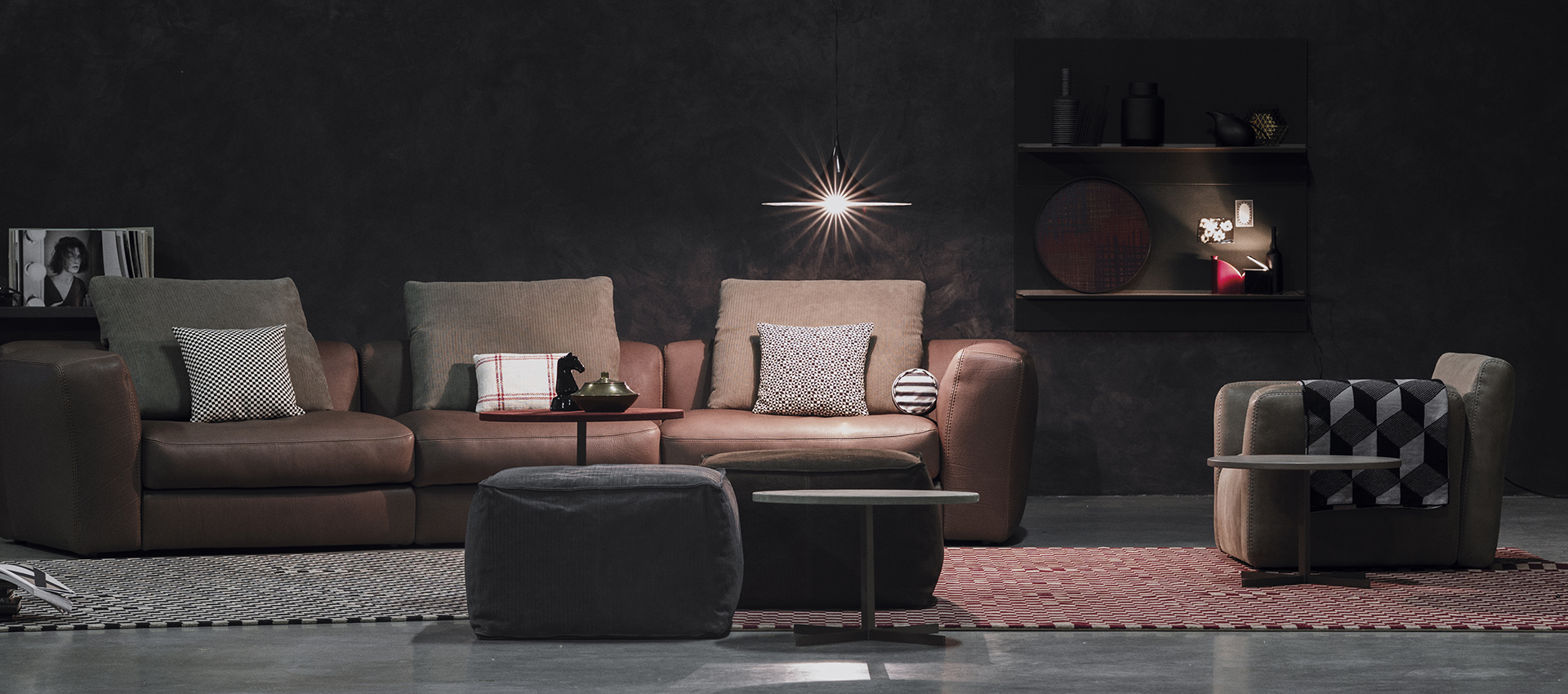 Modular sofa with wooden frame and support of woven elastic ribbons. THE