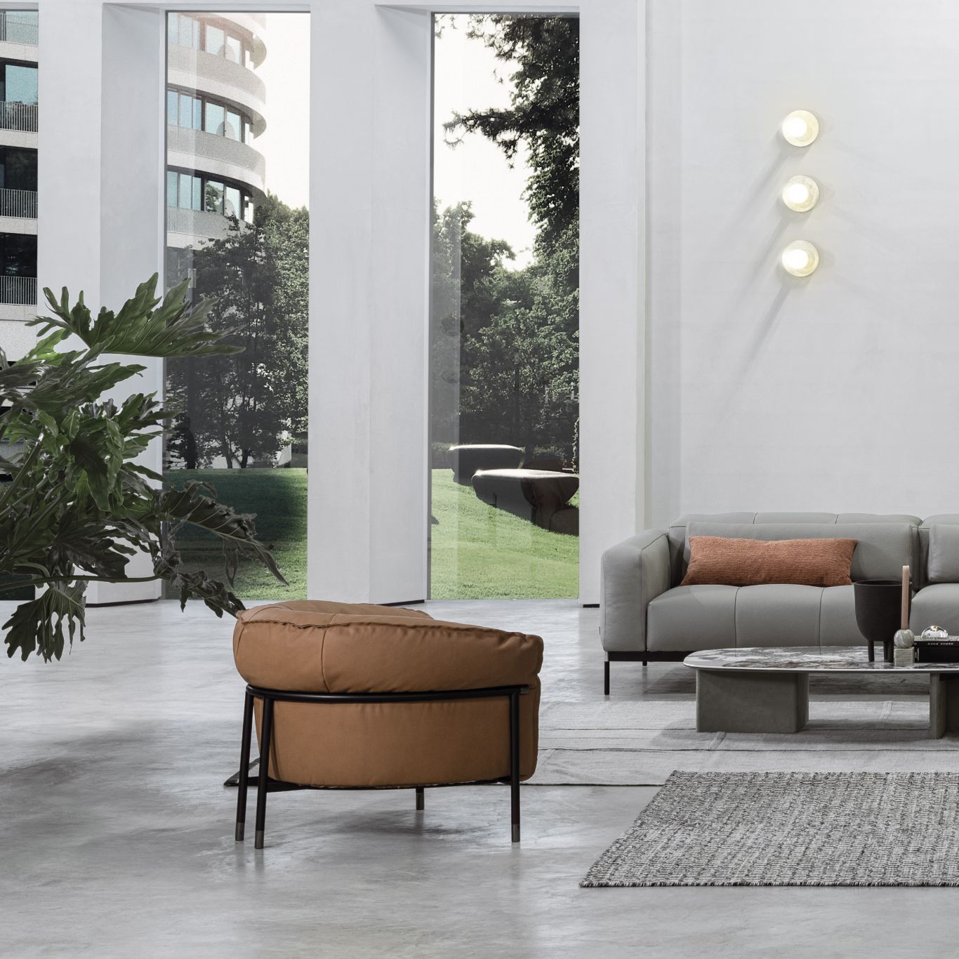 Un’esplosione di comode forme sostenuta da un rigido telaio geometrico. Immaginate poi l’opacità del metallo verniciato o la brillantezza dei particolari cromati mischiarsi ai tessuti e a un universo di pelli. La bellezza di questa poltrona, che è un inno alla Bauhaus, definisce immediatamente lo stile di ogni spazio che vorrà ospitarla.