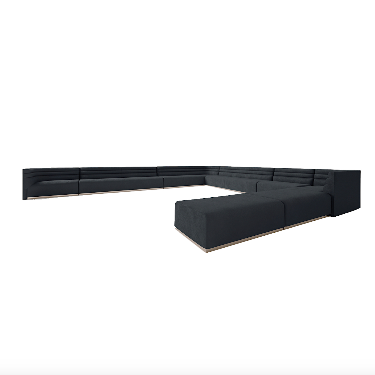 Schienale e braccioli sagomati. Composizione personalizzabile.