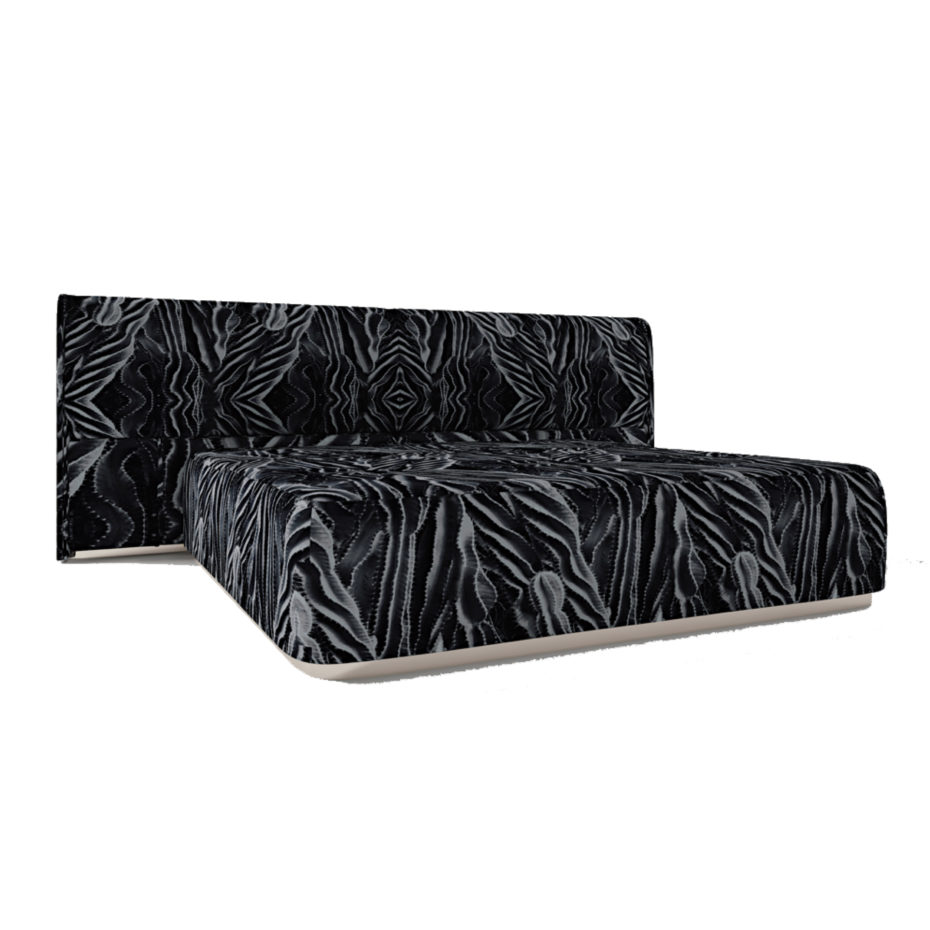 Struttura in legno multistrato. Base testata e giroletto rivestita in metallo. Rivestimento in pelle o tessuto non sfoderable. Imbottitura in poliuretano espanso. Testata e giroletto sagomati.