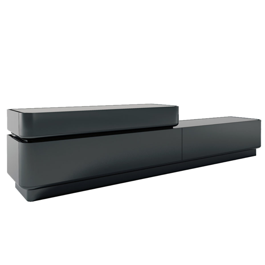 Struttura in legno laccato. Interno cassetti laccato. Top superiore in marmo. Top inferiore in legno laccato. Cassetti con chiusura soft.