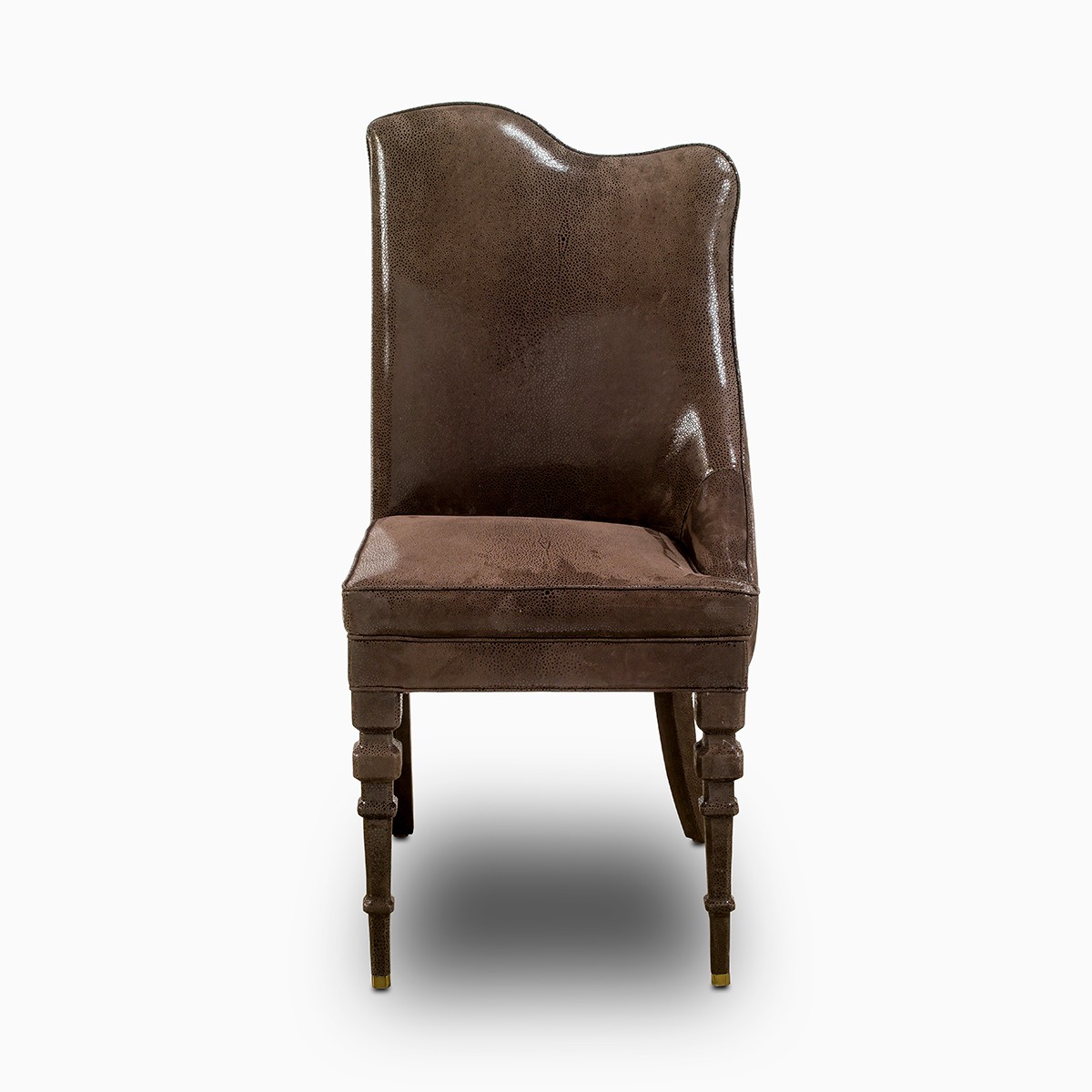 Struttura in legno di faggio. Rivestimento in pelle o tessuto non sfoderabile. Profili schienale con forme diverse e complementari che accostate formano una sagoma continua. Puntali in ottone. MISURE: SXB – SXC L / W 47 P / D 54 H 100